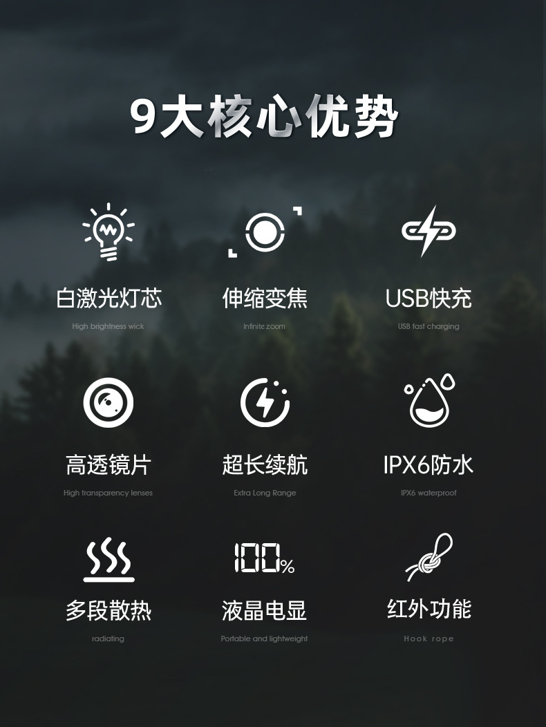 COB 작업 조명이있는 30W 흰색 레이저 손전등 국경 새로운 손전등 USB 충전식 야외 조명