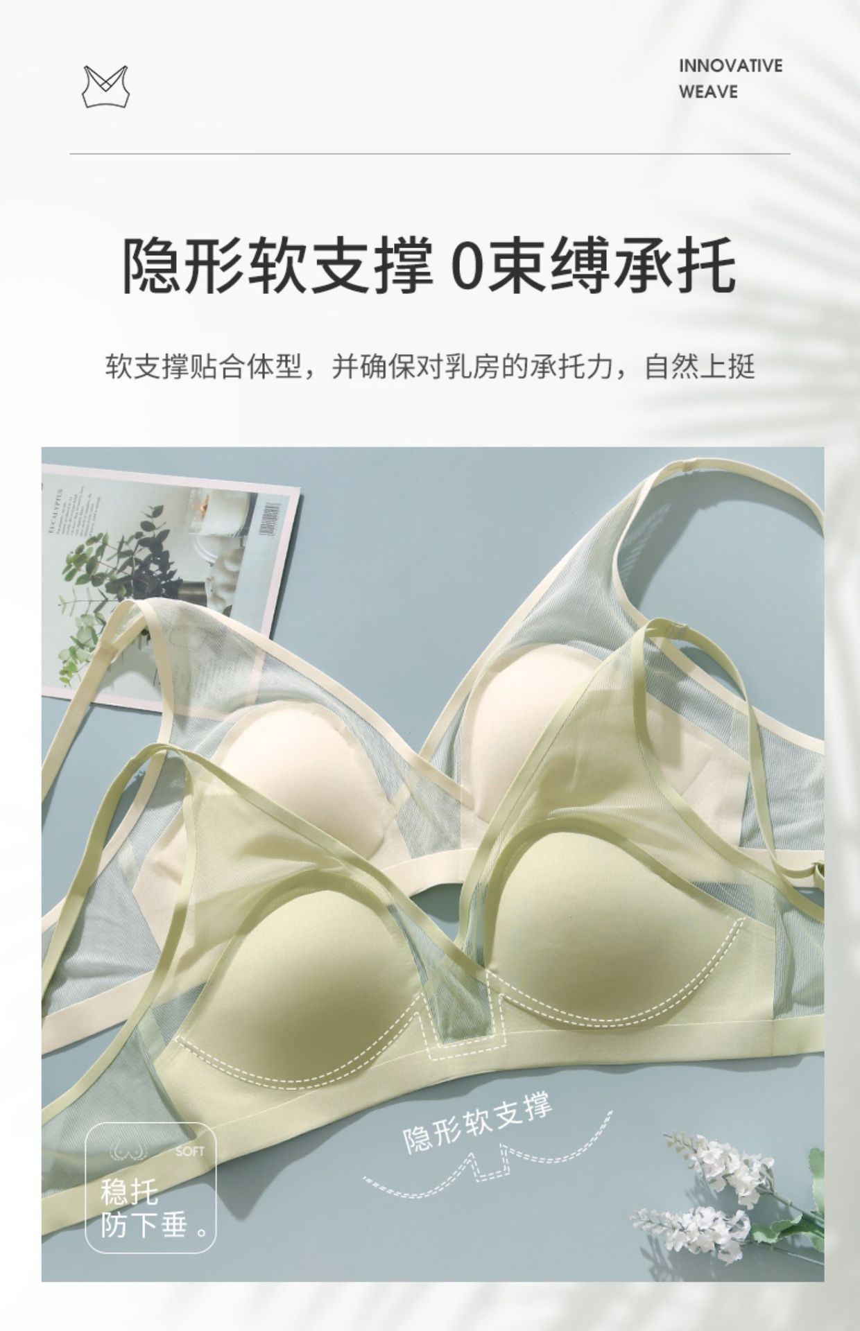 [재고 작은 귀] 고양이 귀 컵 노스틸 링 ABC컵 초박형 슬림 사이드 칼라 리프팅 노마크 속옷 여성