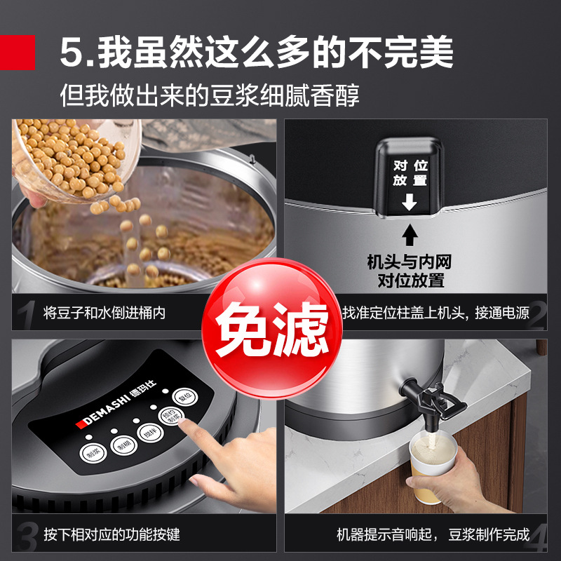 Demas 상업용 두유 기계 모든 스테인레스 스틸 내부 바디 아침 식사 가게 필수 두유 음료 기계 내장 스트레이너
