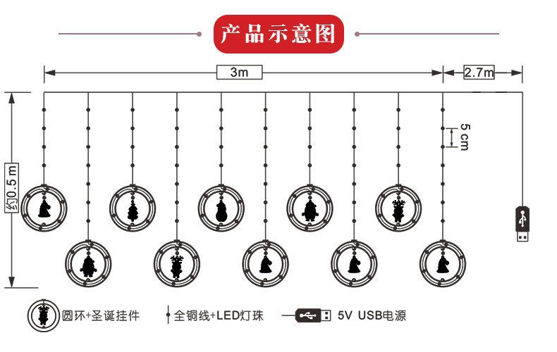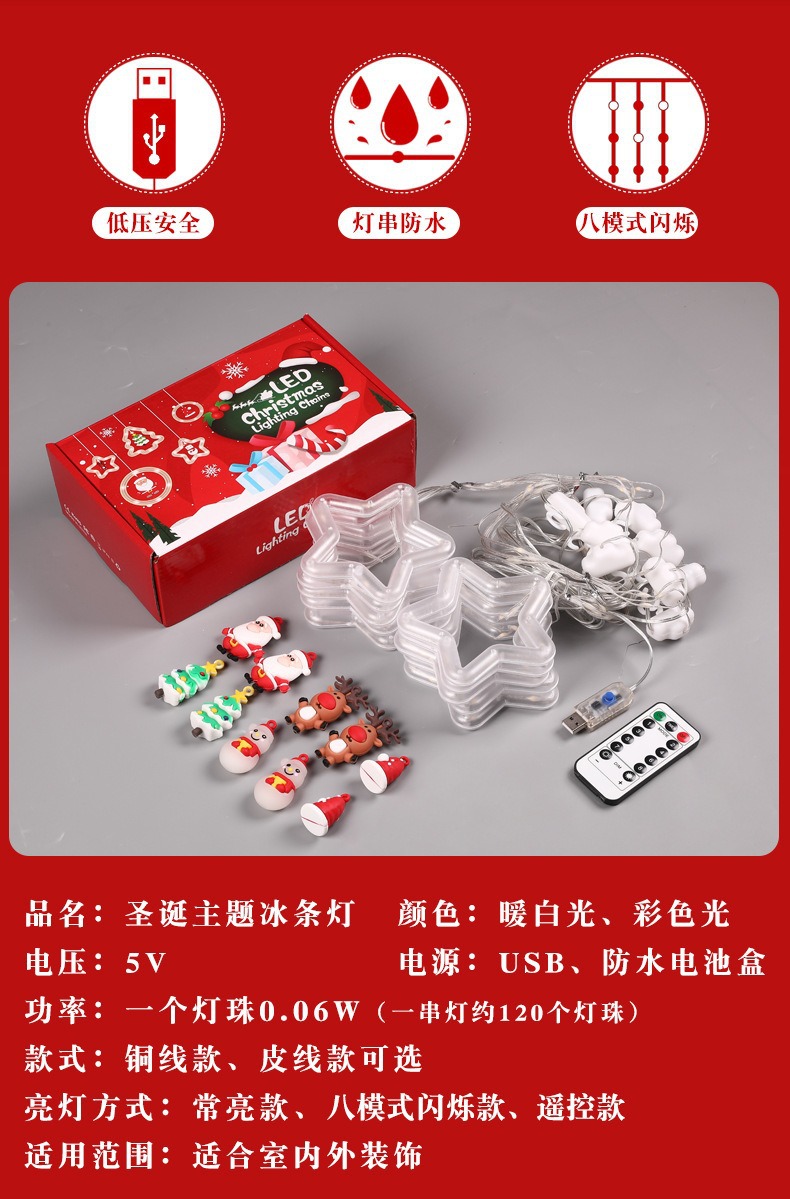 크리스마스 LED 가죽 라이트 커튼 스트링 오래 된 눈사람 크리스마스 트리 펜던트 실내 분위기 조명 얼음 빛