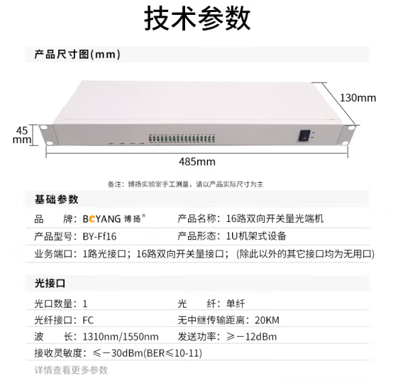 博扬(BOYANG)开关量光端机16路双向开关量 转光纤红外对射/周界报警/烟感报警/信号报警 一对 BY-Ff16 *1 合格证*1 保修卡*1