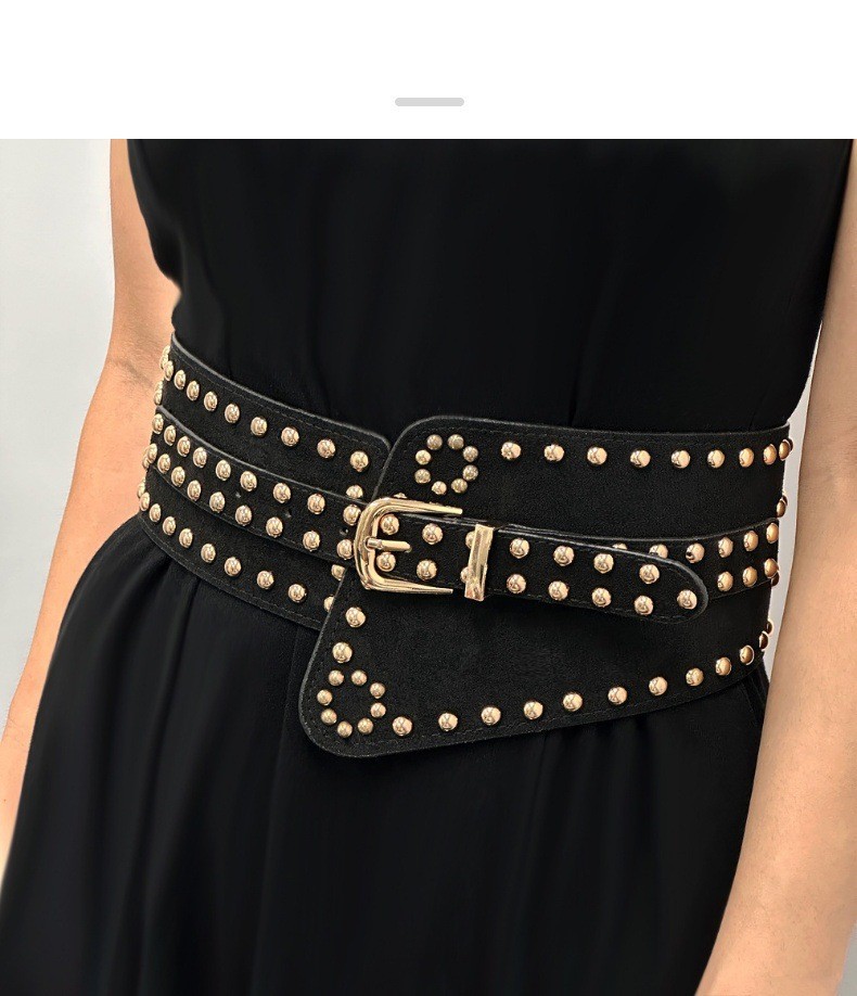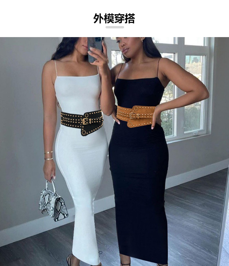 유럽과 미국의 패션 리벳 허리 코르셋 허리 복고풍 다목적 탄성 장식 와이드 벨트 여성 액세서리 국경 도매스토어 가기