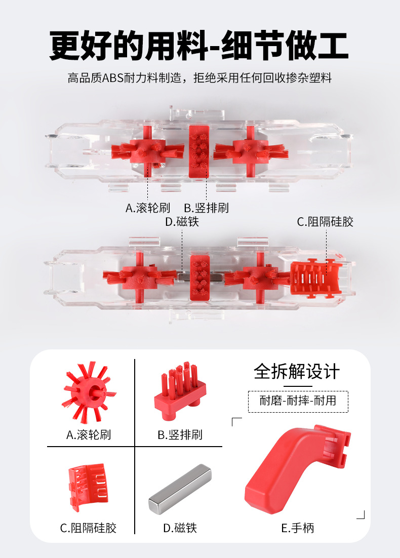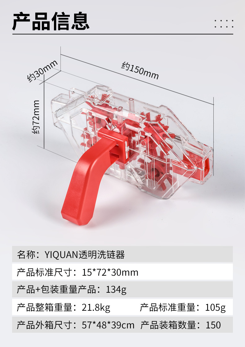 • 투명 체인 와셔 + 빨간색 대형 브러시 + 라벨이 없는 작은 브러시