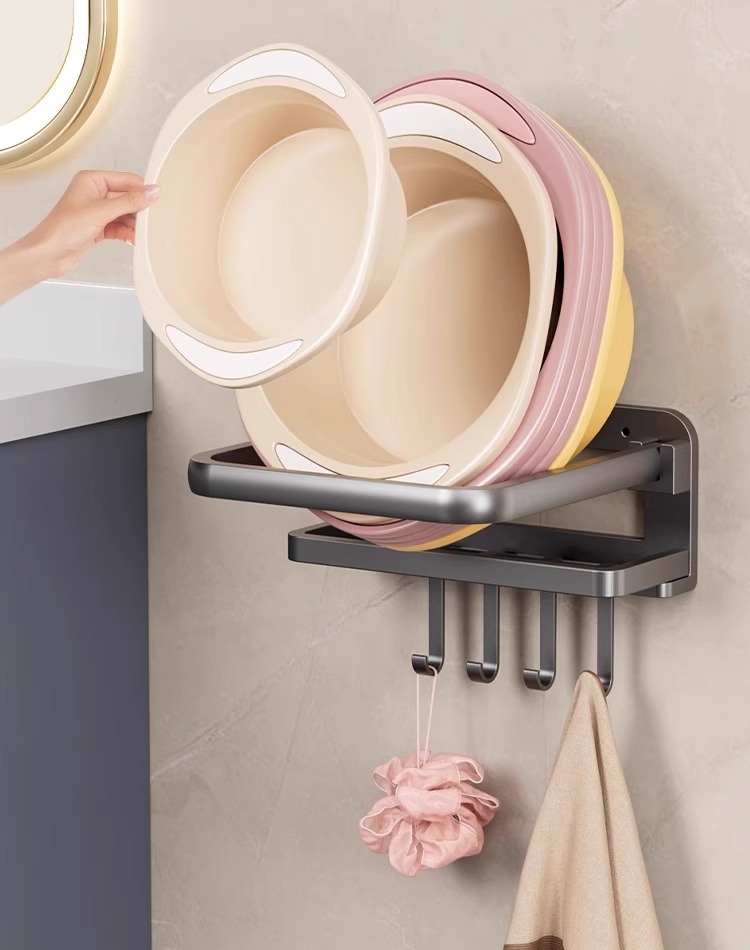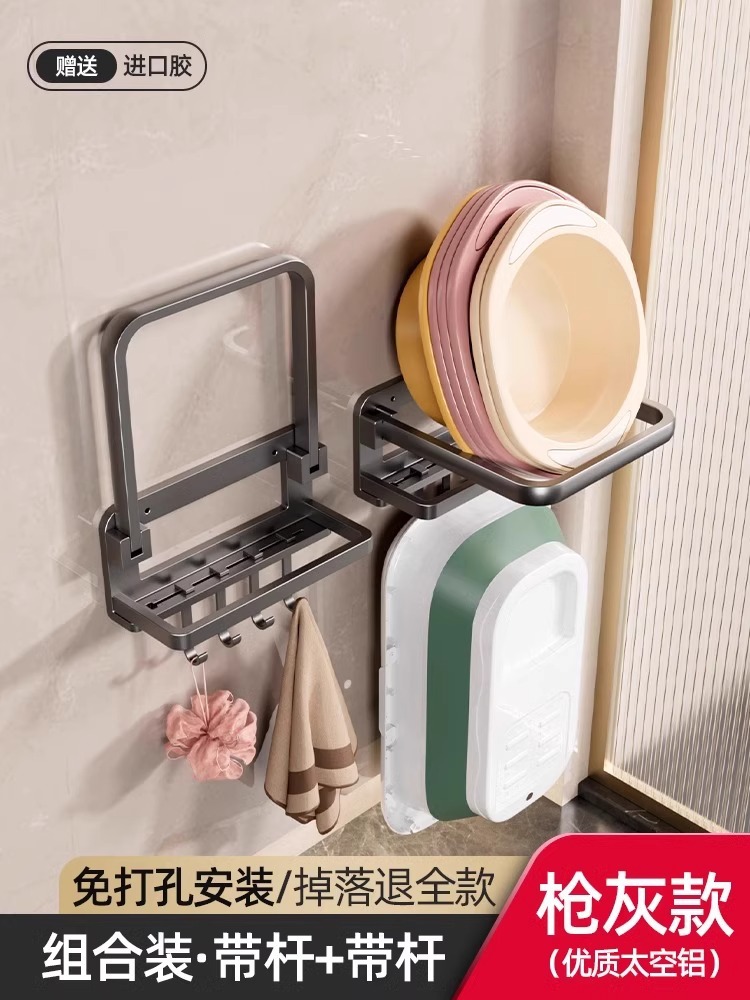 가정용 욕실 용 세면기 펀치 프리 화장실 보관 랙 벽걸이 형 세면대 교수형 분지 랙 용 접이식 보관 랙