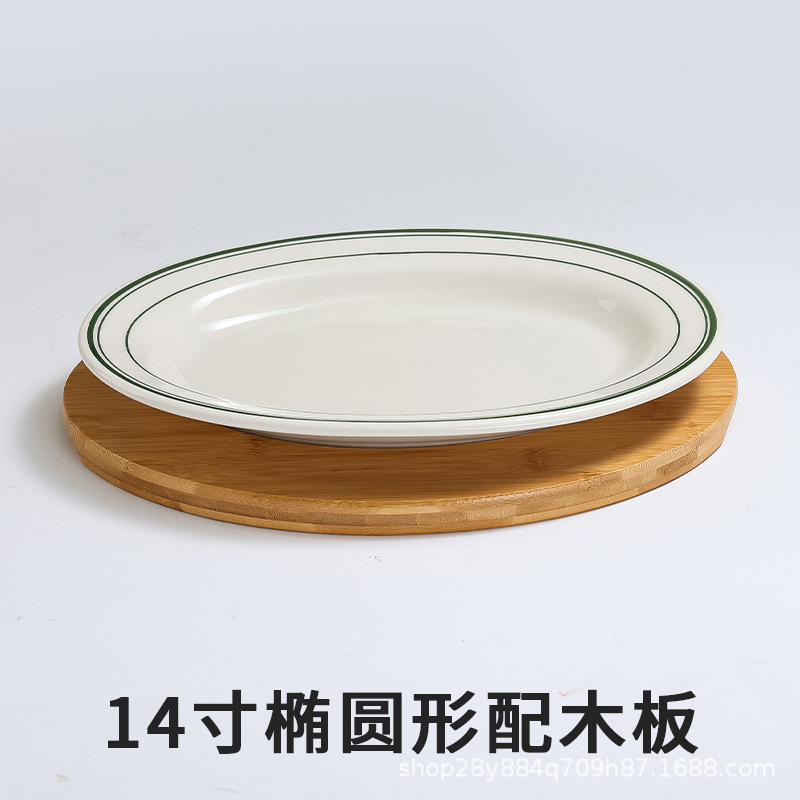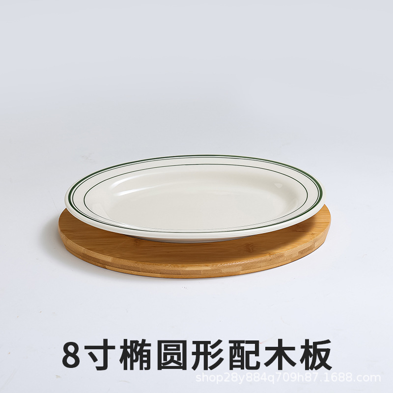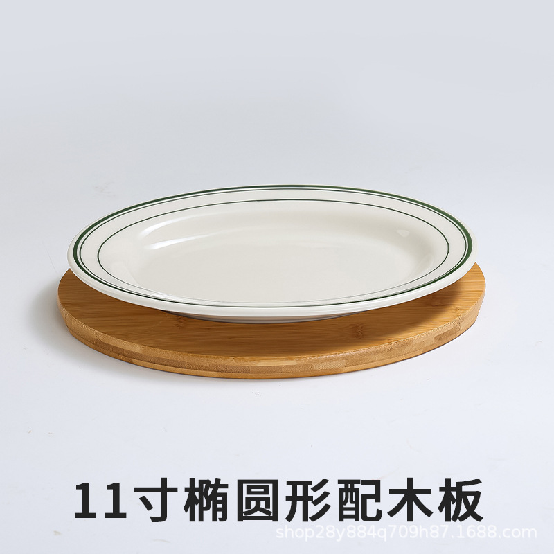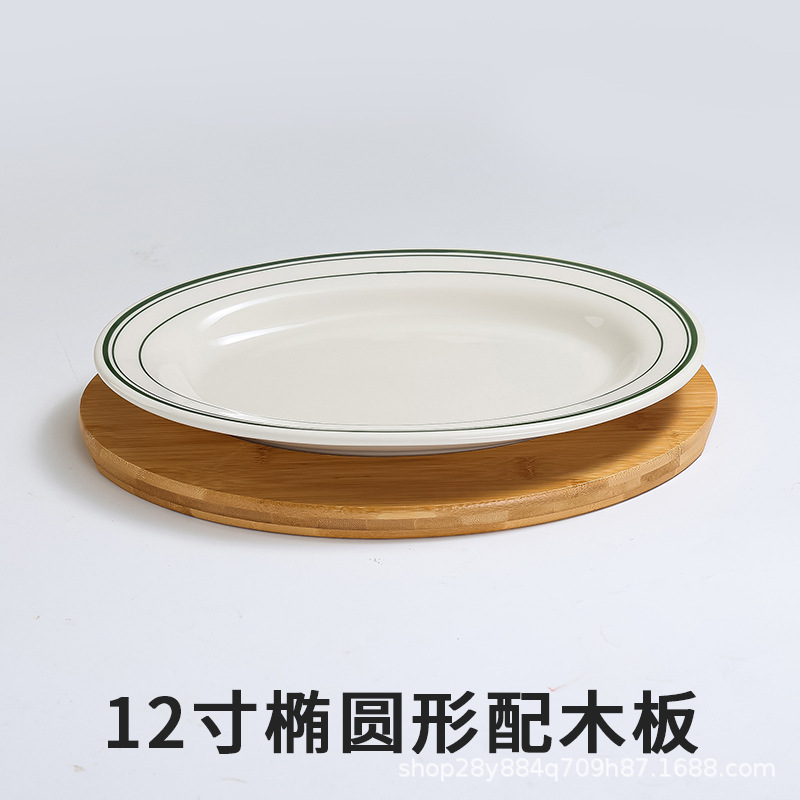 미국 텍사스 고온 특수 스테이크 플레이트 세라믹 플레이트 웨스턴 레스토랑 오븐 토마 호크 스테이크 타원형 어판
