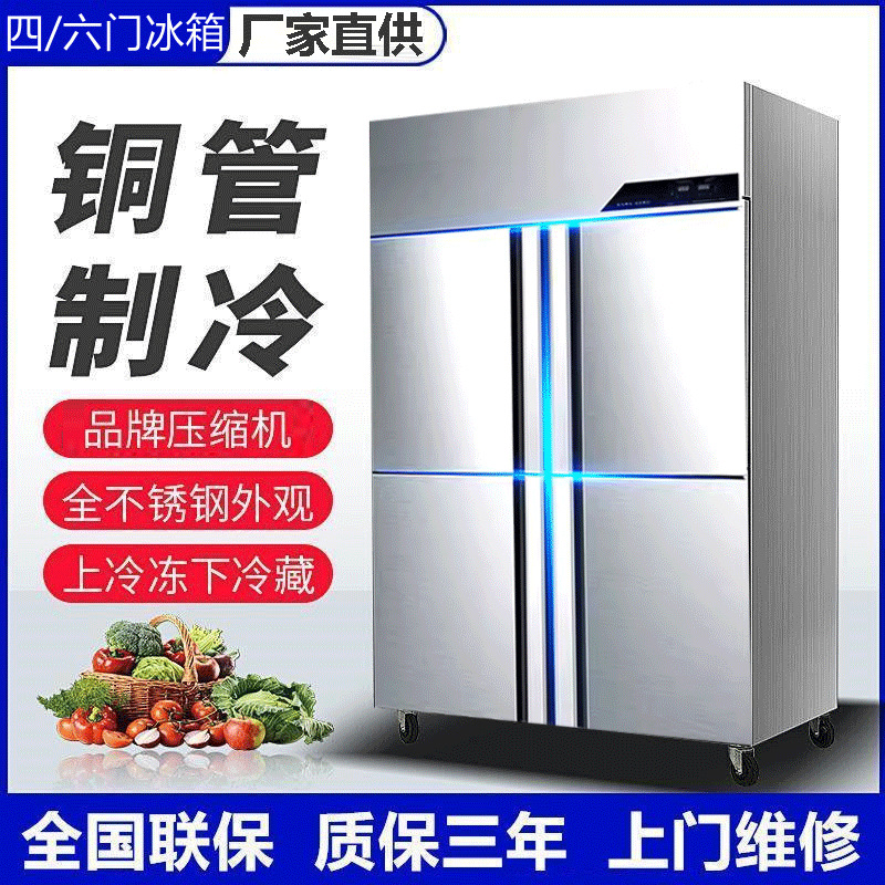 4 도어 6 도어 냉장고 스테인레스 스틸 상업용 주방 냉동고 대용량 수직 신선한 냉장 디스플레이 냉동고