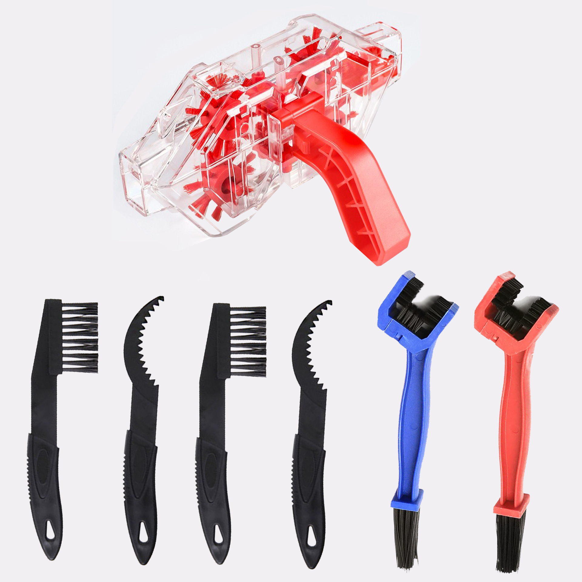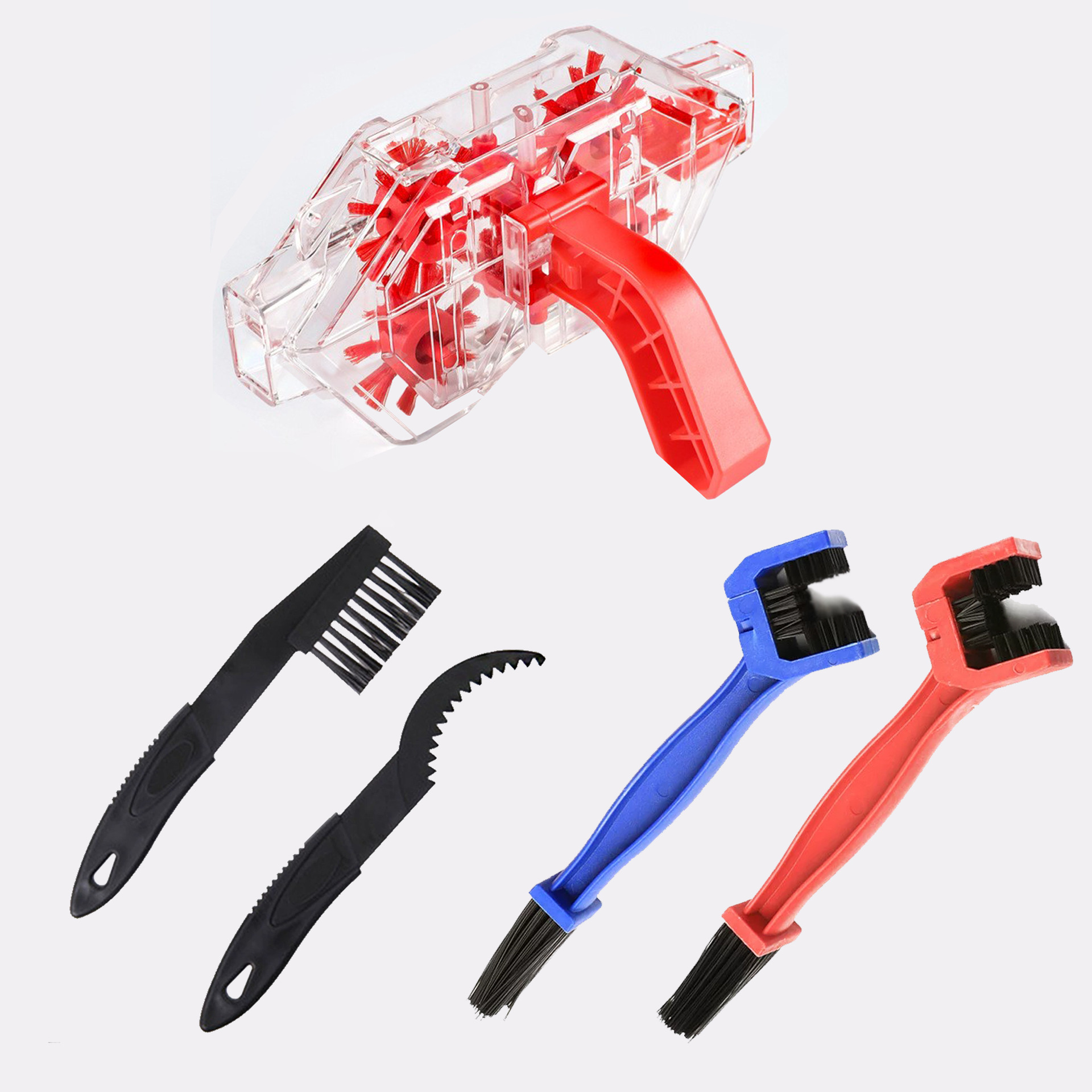 • 투명 체인 와셔 + 빨간색 대형 브러시 + 라벨이 없는 작은 브러시