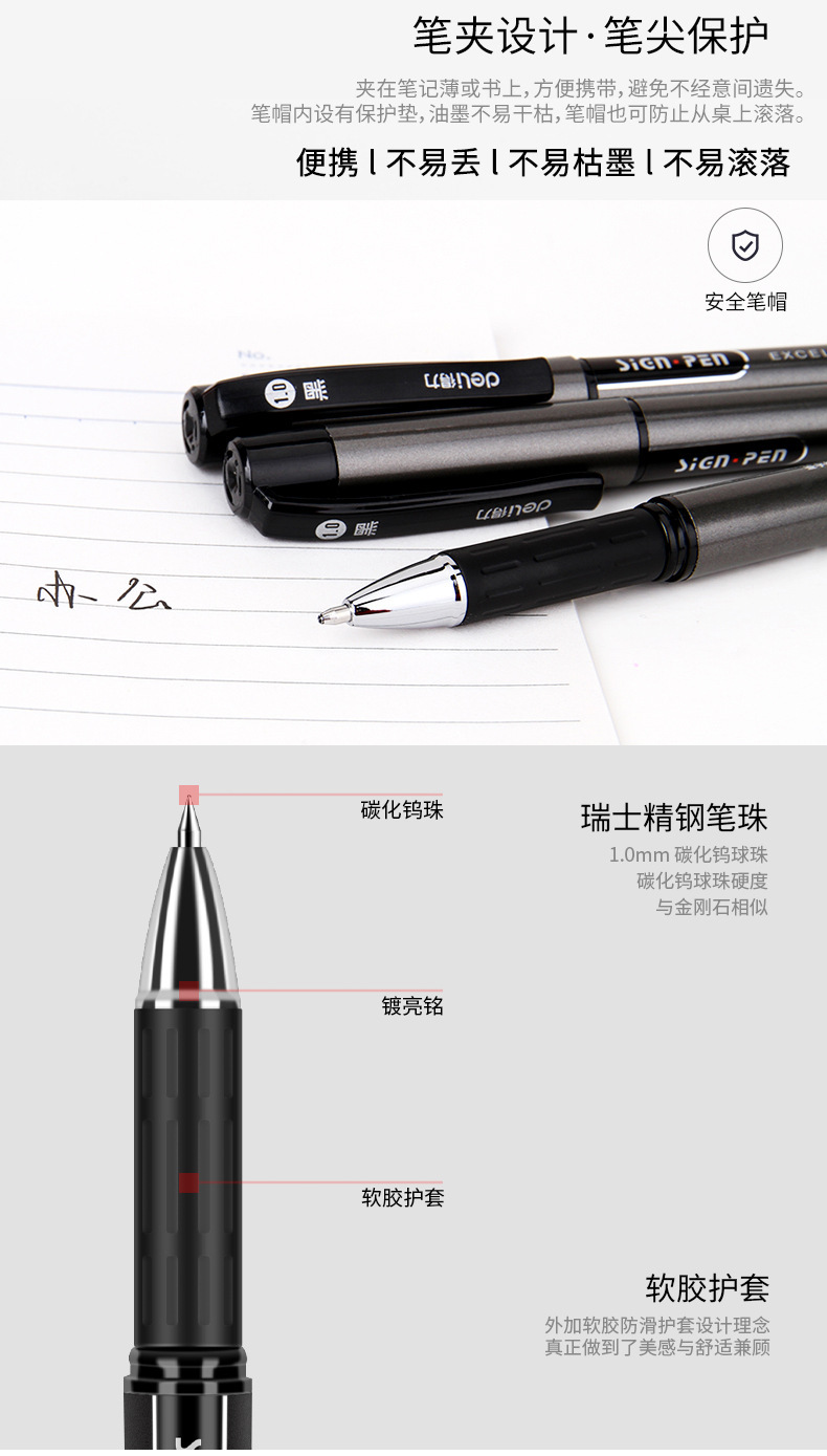 델리 S73 오피스 젤 펜 1.0mm 대담한 카본 펜 비즈니스 사인 펜 부드러운 학생 도매스토어 가기