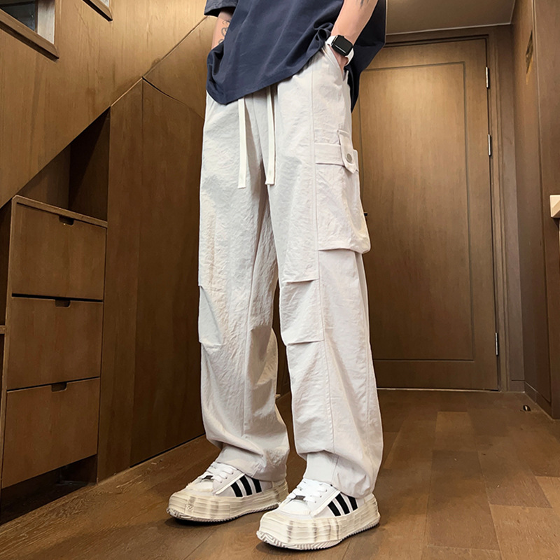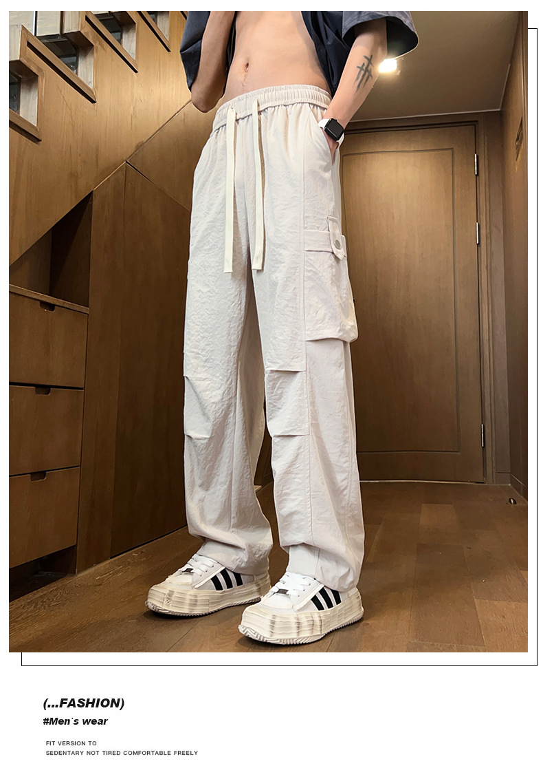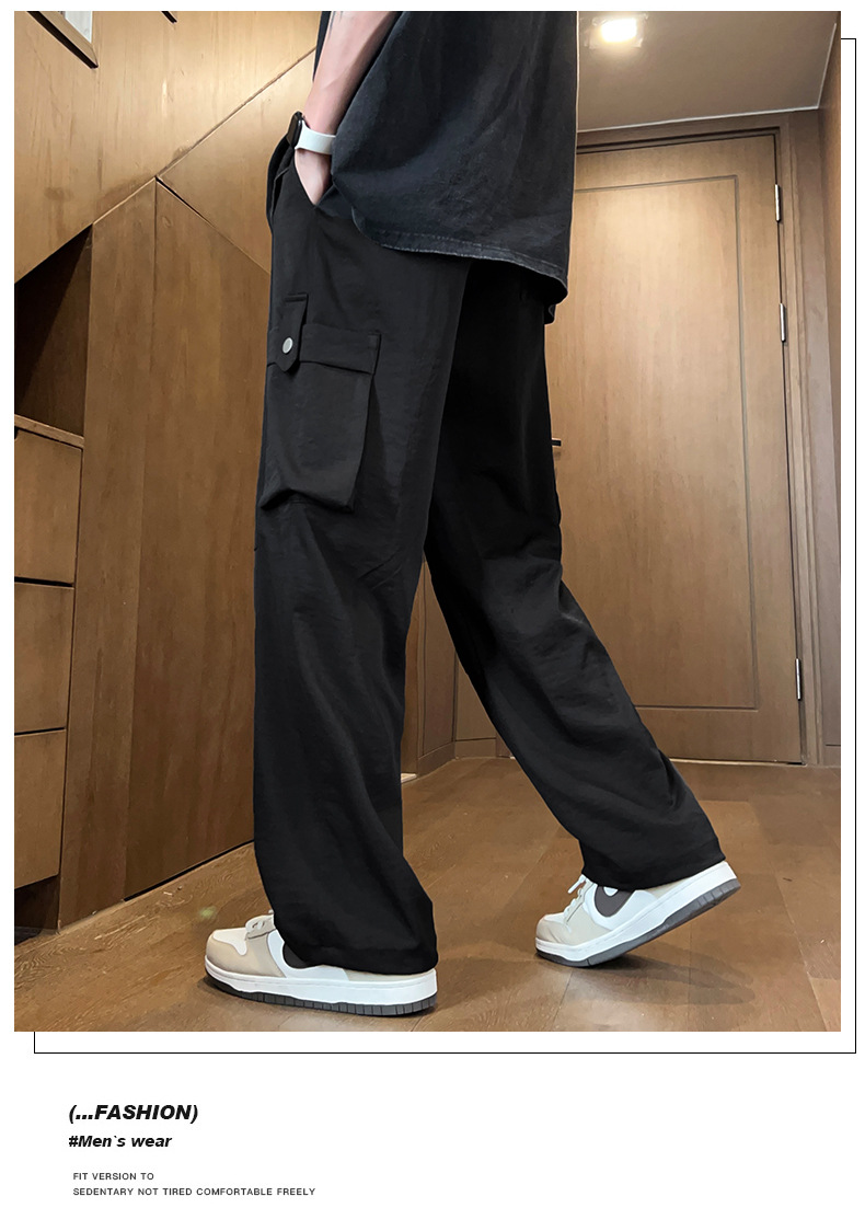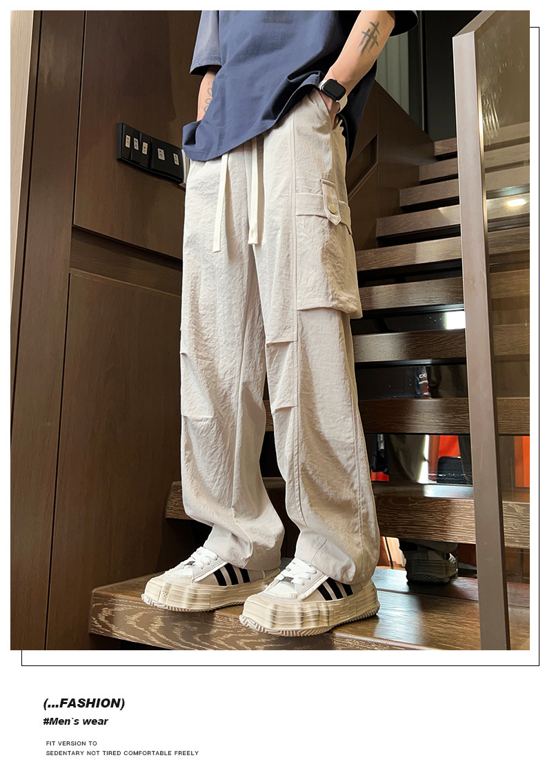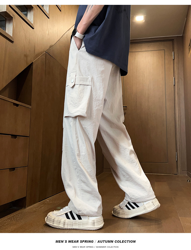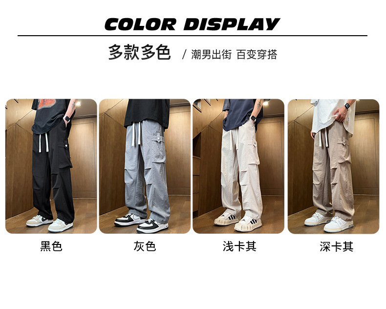 아이스 실크 빠른 건조 바지 남자 2024 여름 느슨한 직선 기능화물 바지 남자의 유행 브랜드 와이드 레그 캐주얼 바지스토어 가기