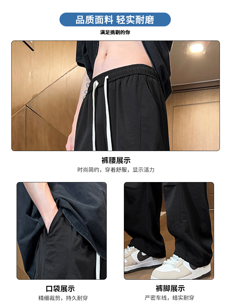 아이스 실크 빠른 건조 바지 남자 2024 여름 느슨한 직선 기능화물 바지 남자의 유행 브랜드 와이드 레그 캐주얼 바지