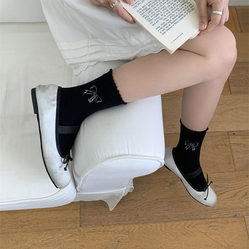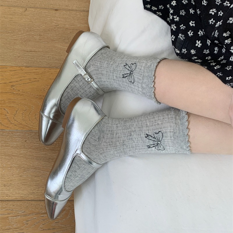 [로퍼와 일치 가능] 여름 새로운 얇은 면화 간단한 절묘한 밝은 실크 활 레이스 소녀 튜브 양말스토어 가기