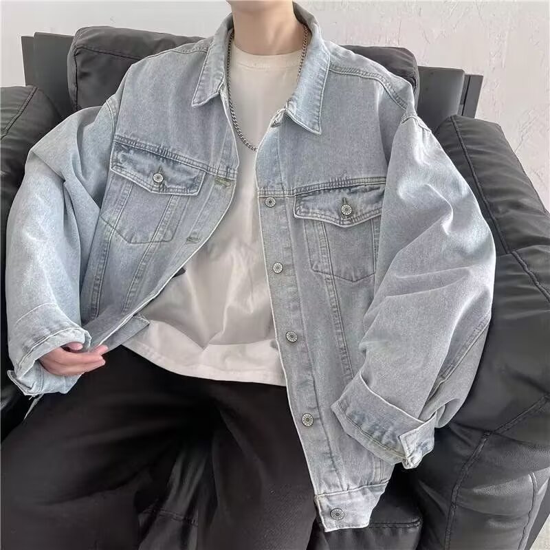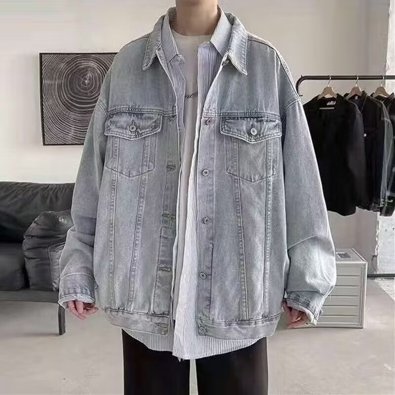 2024 년 가을을위한 오버 사이즈 작업복 데님 재킷 남자의 새로운 도착 느슨한 유행 브랜드 하이 스트리트 호박 잘 생긴 탑스토어 가기