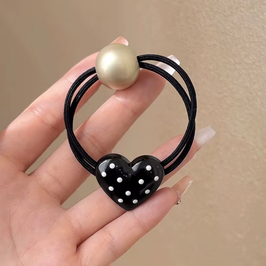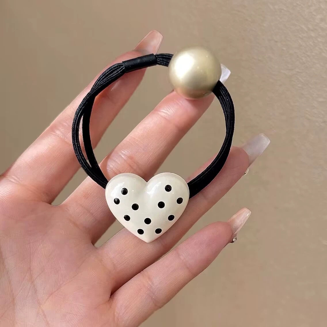 여름 한국 스타일 신선한 스타일 레트로 웨이브 도트 사랑 진주 헤어 로프 모든 경기 간단한 높은 탄성 고무 텐든 머리띠 머리띠 머리