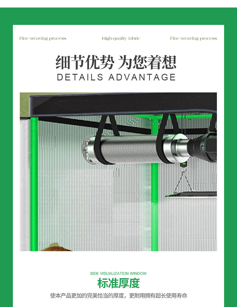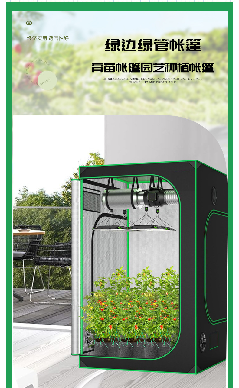 텐트 녹색 가장자리 녹색 튜브 수경 식물 성장 텐트 600D 옥스포드 천 온실 심기 텐트 도매