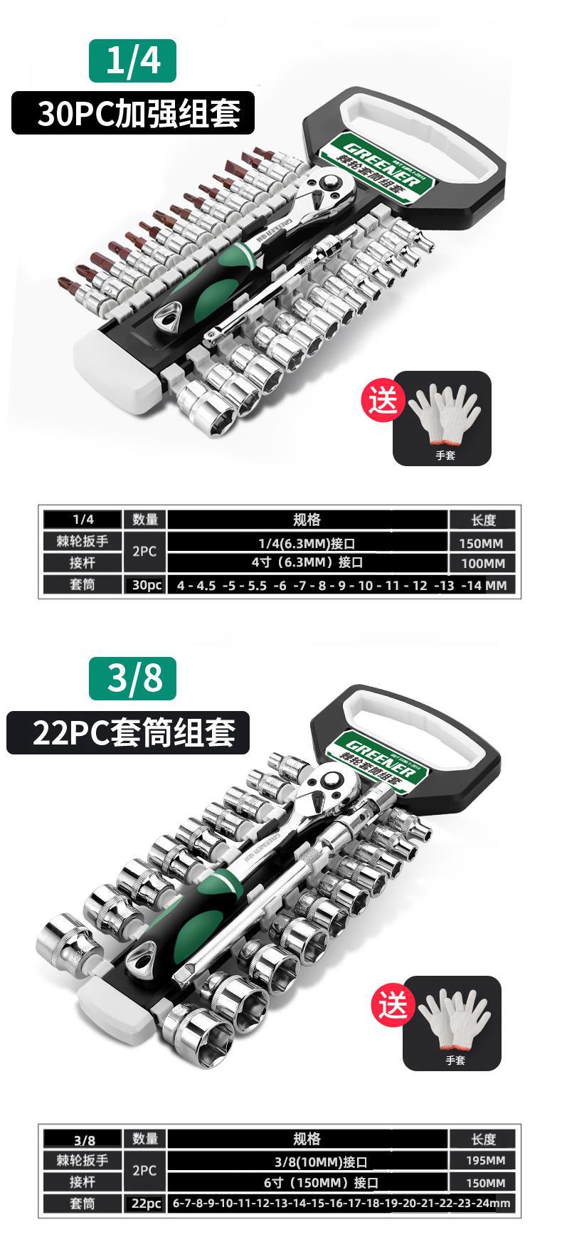 Greenforest 래칫 소켓 렌치 세트 유니버설 렌치 다기능 외부 육각 빠른 렌치 케이싱 자동 수리 도구스토어 가기