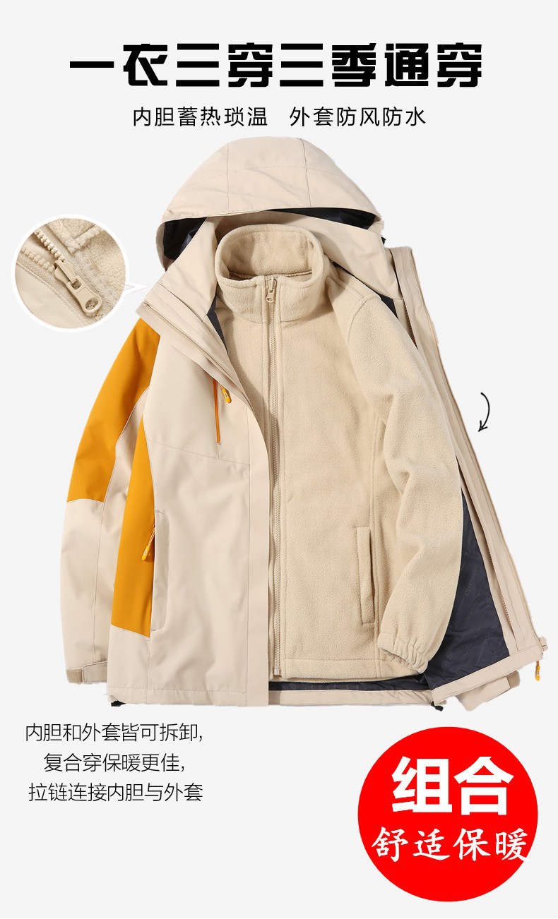 겨울 두꺼운 재킷 남녀 3 대 1 분리형 라이너 기모 야외 스포츠 방풍 및 방비 재킷
