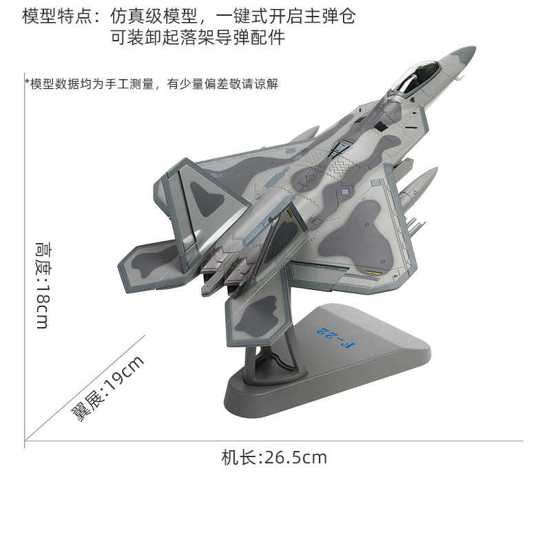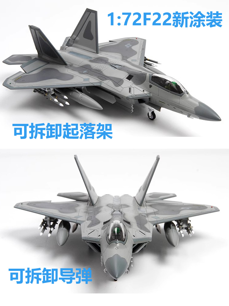 F22 스텔스 전투기 합금 모델 1:72 미국 F22 랩터 시뮬레이션 완성 된 군사 모델 장식품