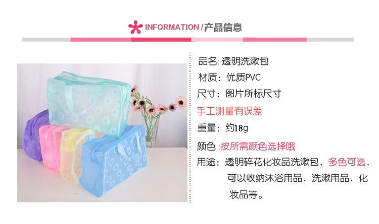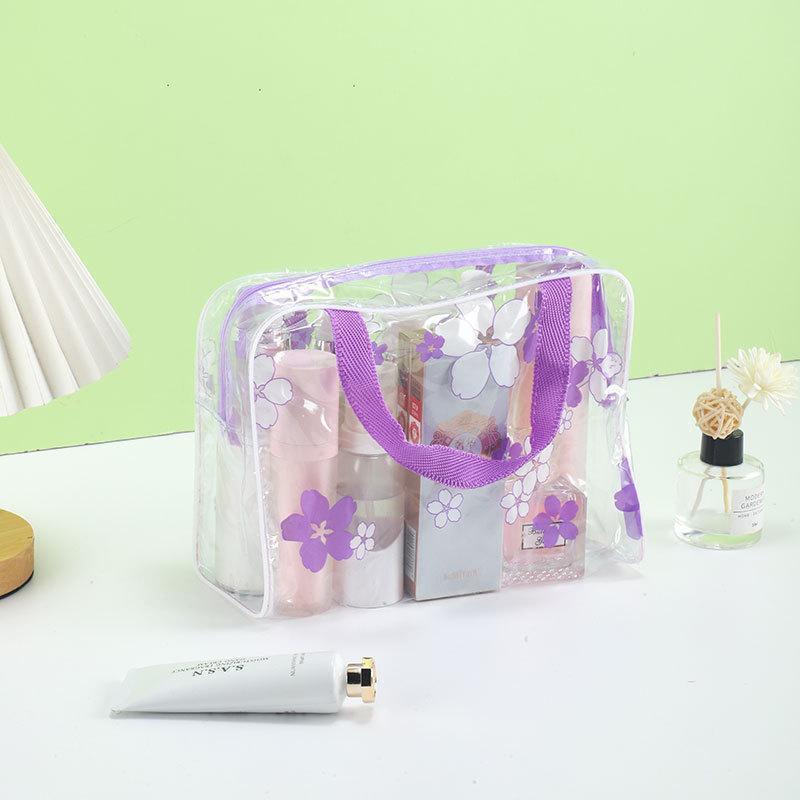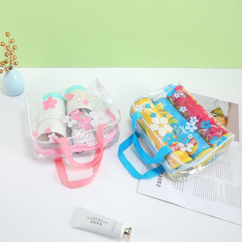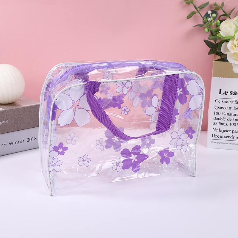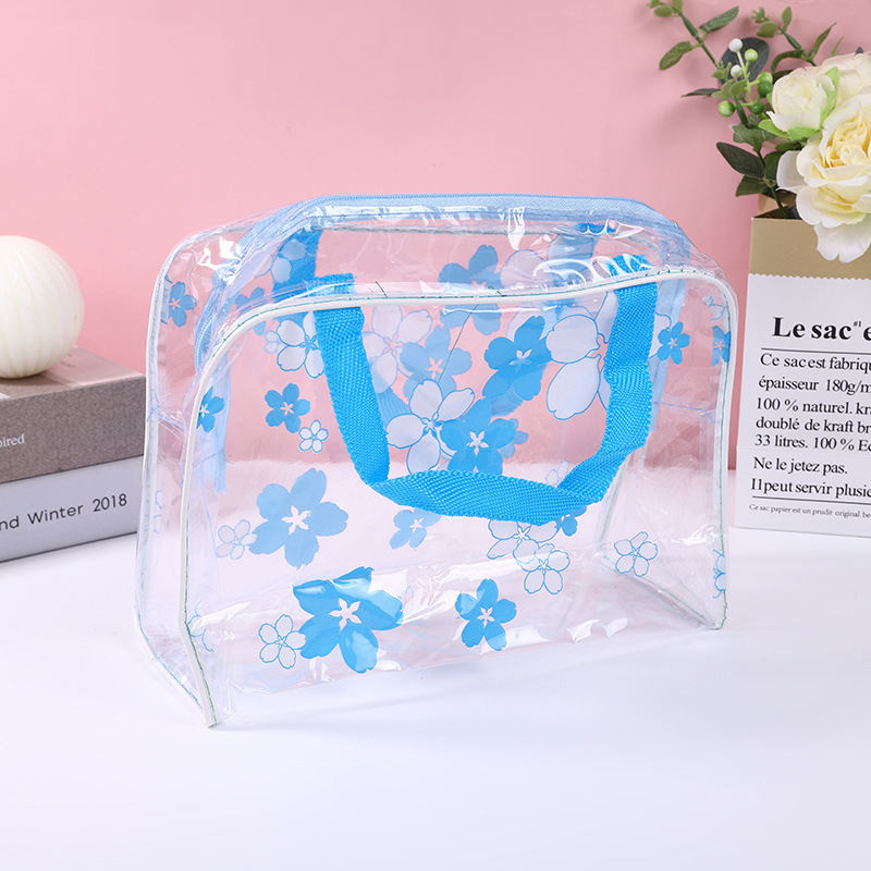 워시 백 두꺼운 꽃 투명 방수 워시 백 목욕 화장품 가방 여행 휴대용 스토리지 워시 백