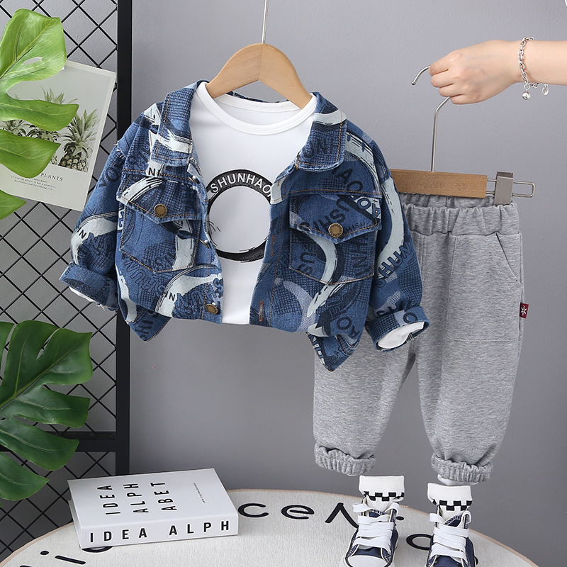 봄과 가을 새로운 2024 소년 세트 봄과 가을 데님 세 조각 아기 잘 생긴 새 데님 세트스토어 가기