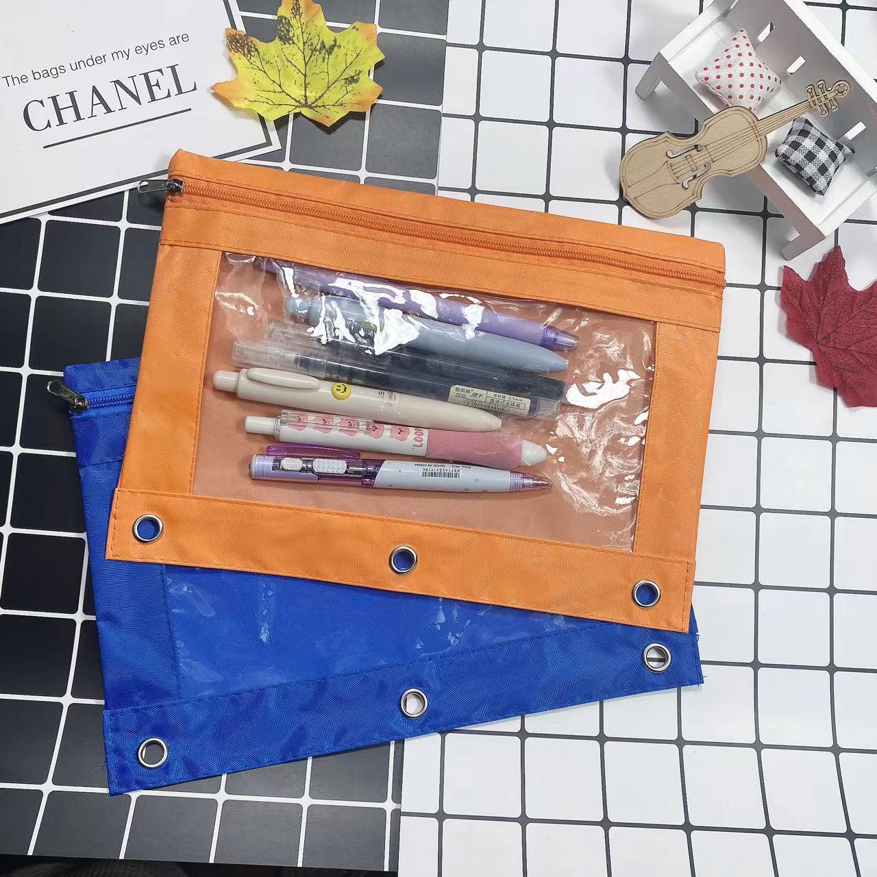 옥스포드 천 3 홀 지퍼 공기 눈 대용량 사무실 문서 보관 가방 학생 연필 케이스