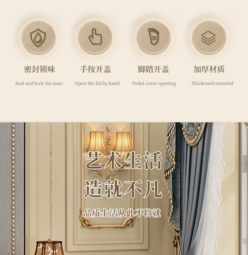 휴지통 뚜껑이있는 가정용 화장실 화장실 대용량 거실 라이트 럭셔리 발 유형 상업 2024 새로운 스타일스토어 가기