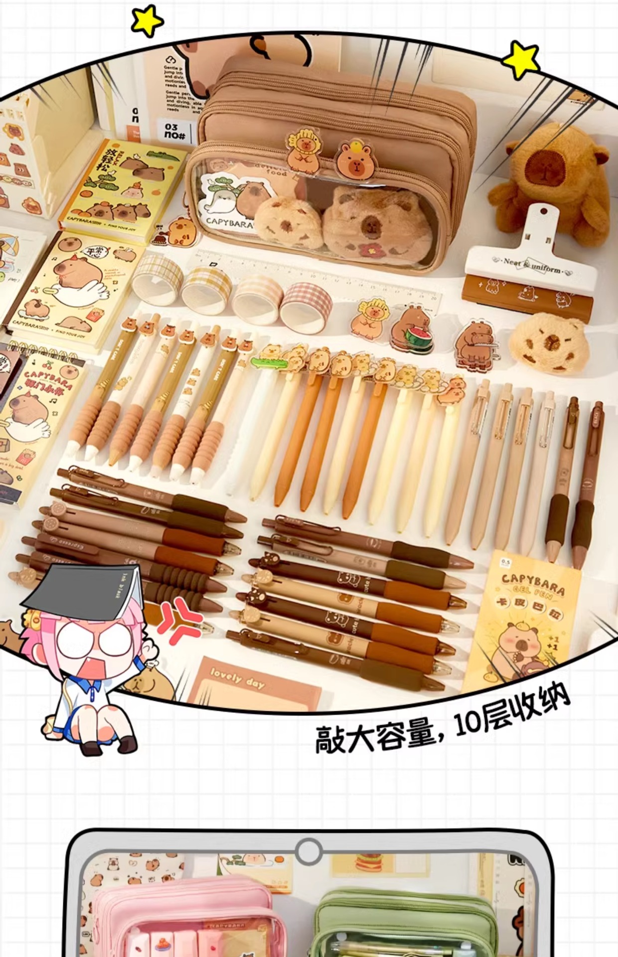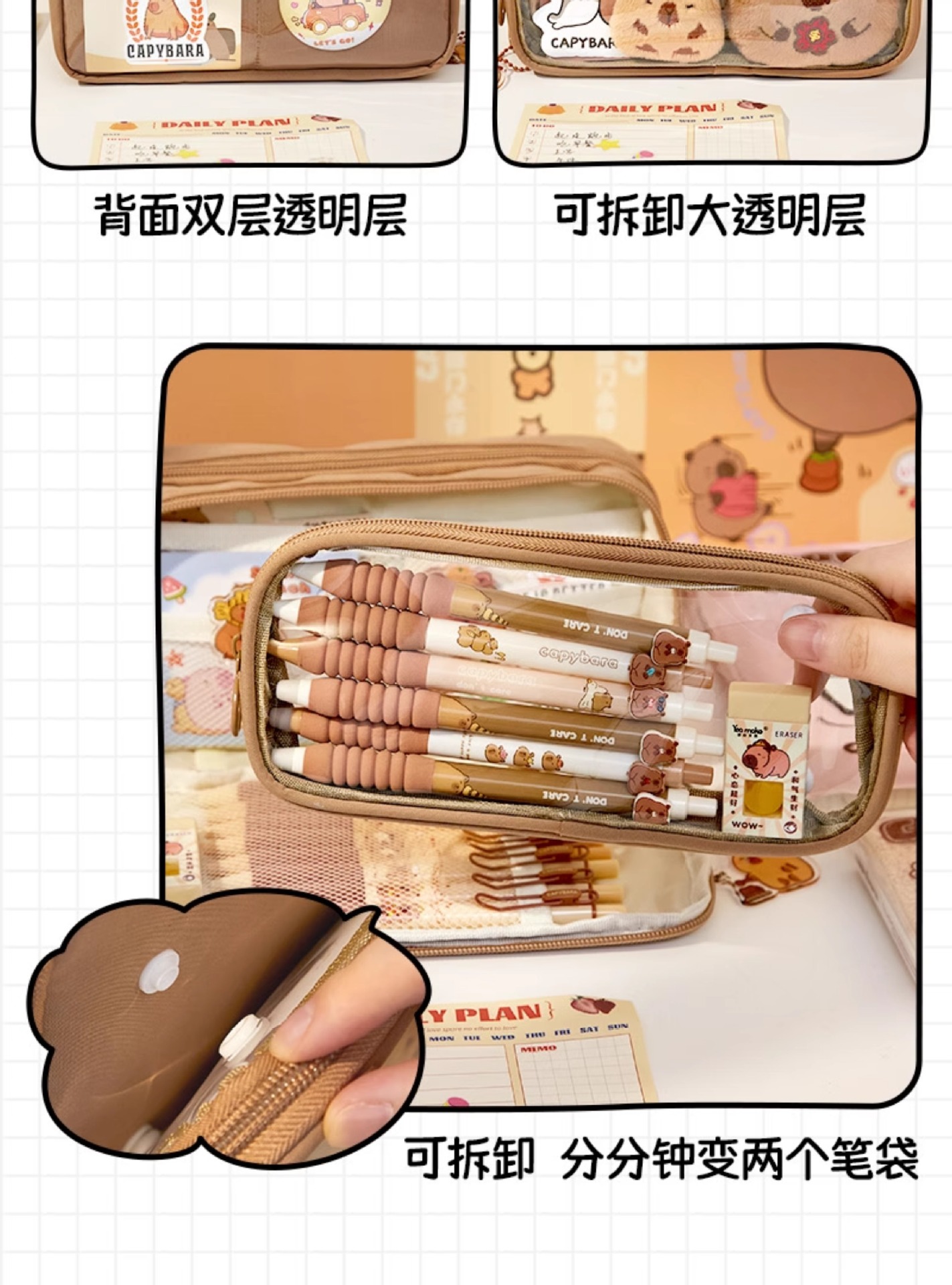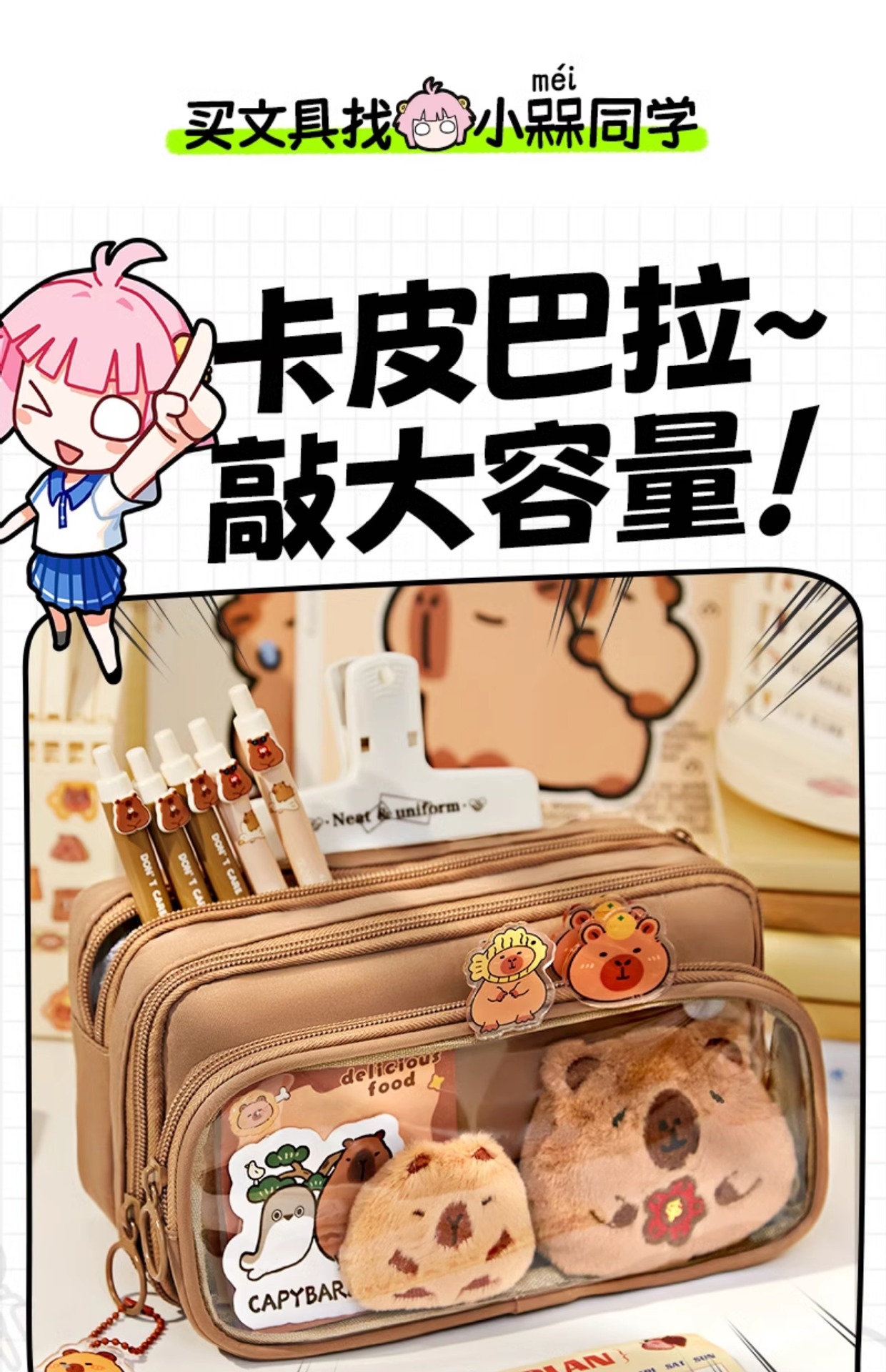 투명 레이어 detachable_kapibala 연필 케이스 여성 초등학생 2024 새로운 다층 대용량 문구 연필스토어 가기