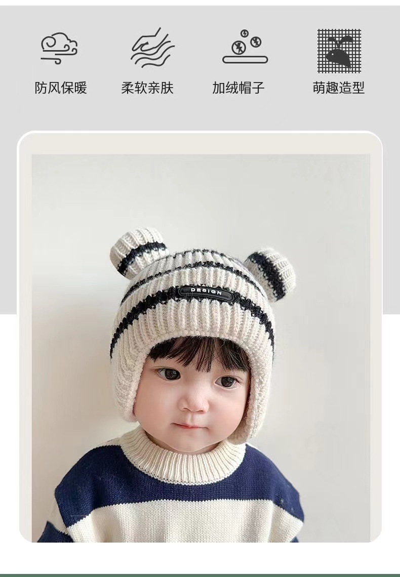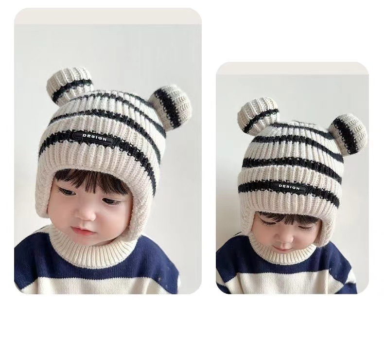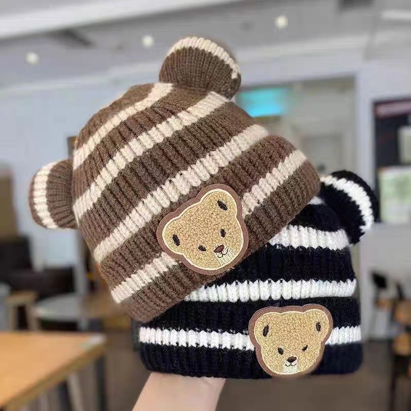 가을과 겨울 한국 스타일 소년 소녀를위한 어린이 니트 모자 아기 줄무늬 곰 머리 울 모자 곡선 가장자리 멜론 피부 따뜻한 모자
