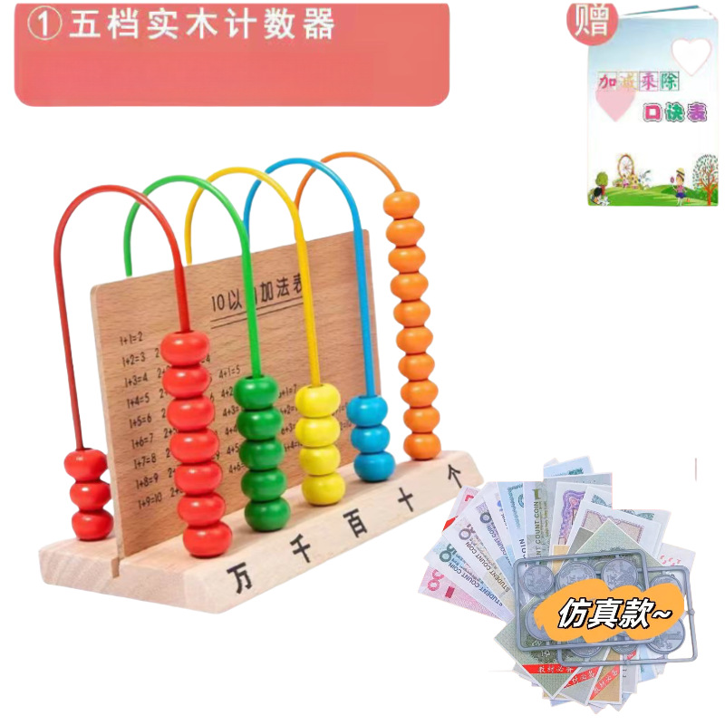 • 5 기어 라운드 구슬 단단한 나무 카운터 학습 동전