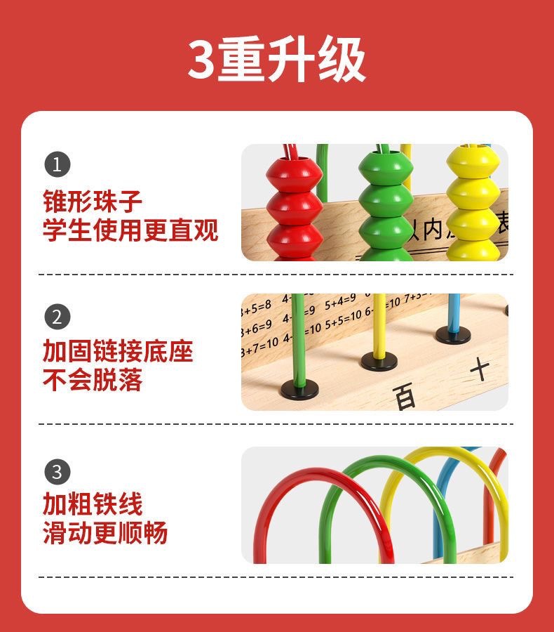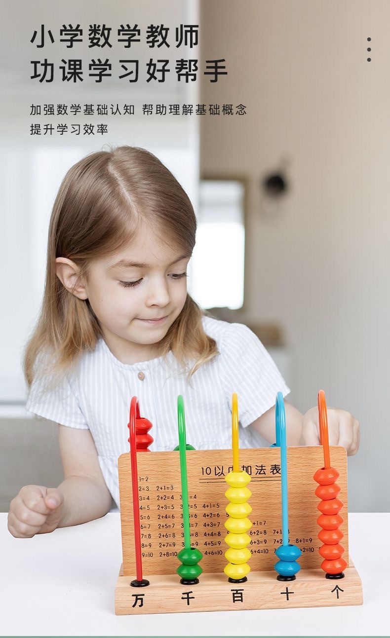 초등학생 조기 교육 산술 랙 1 학년 및 2 학년 어린이 교육 수학 교육 보조 나무 10 파일 5 줄 계산 랙 공장스토어 가기