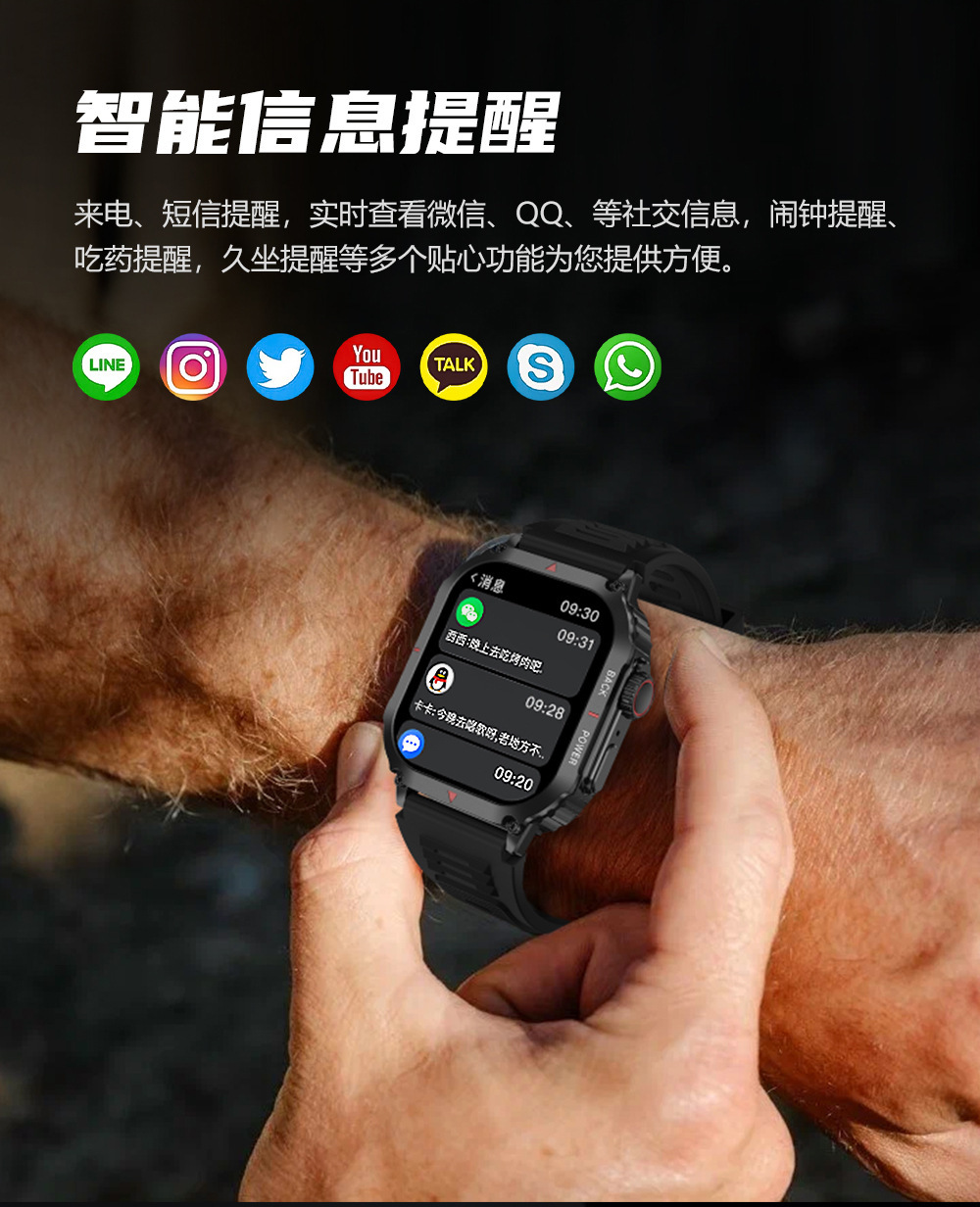 새로운 블루투스 통화 심박수 혈압 혈중 산소 건강 모니터링 정보 알림 야외 스포츠 DK66 스마트워치