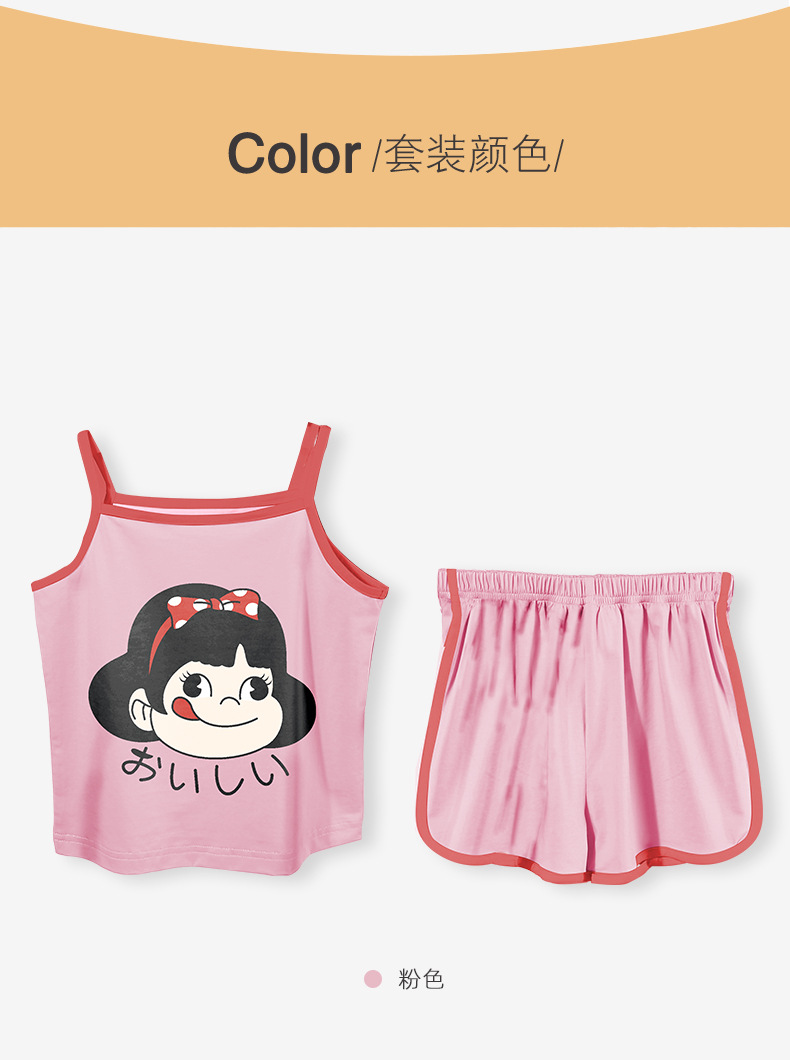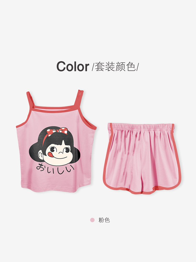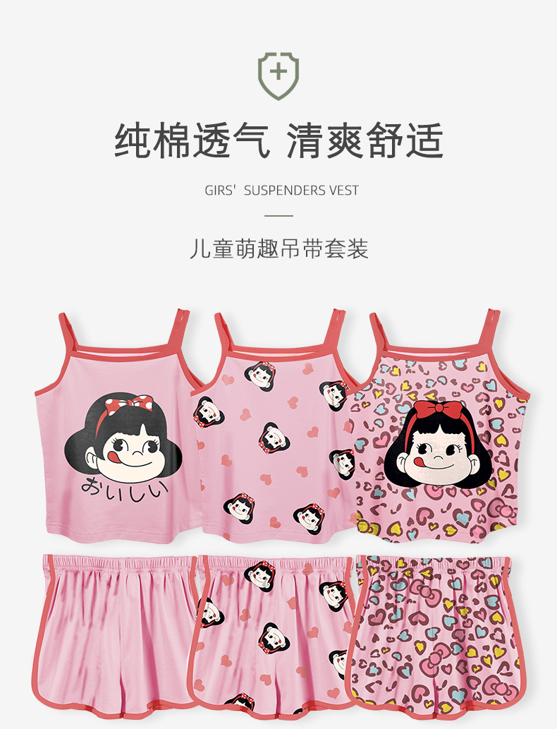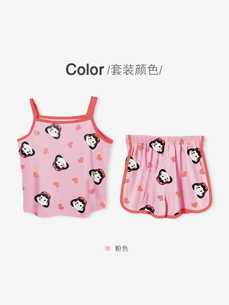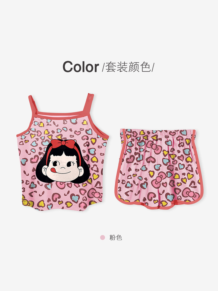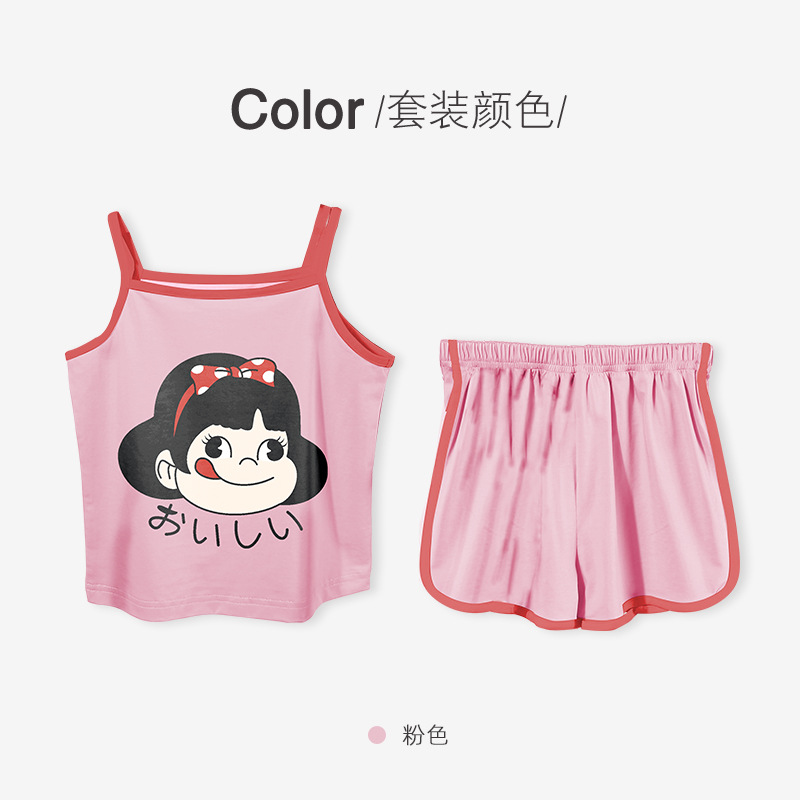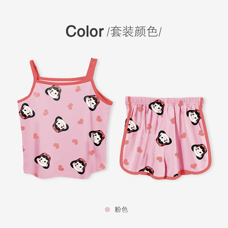 여름 새로운 2024 소녀 만화 귀여운 슬링 파자마 커버 전체 인쇄 반바지 아기 소녀 아이스 실크 투피스 세트스토어 가기