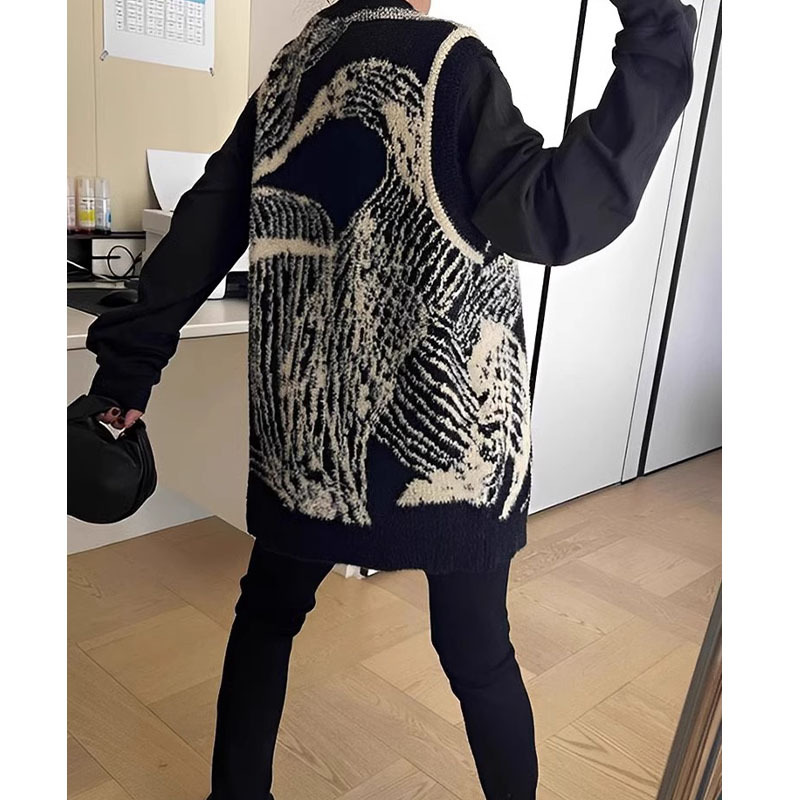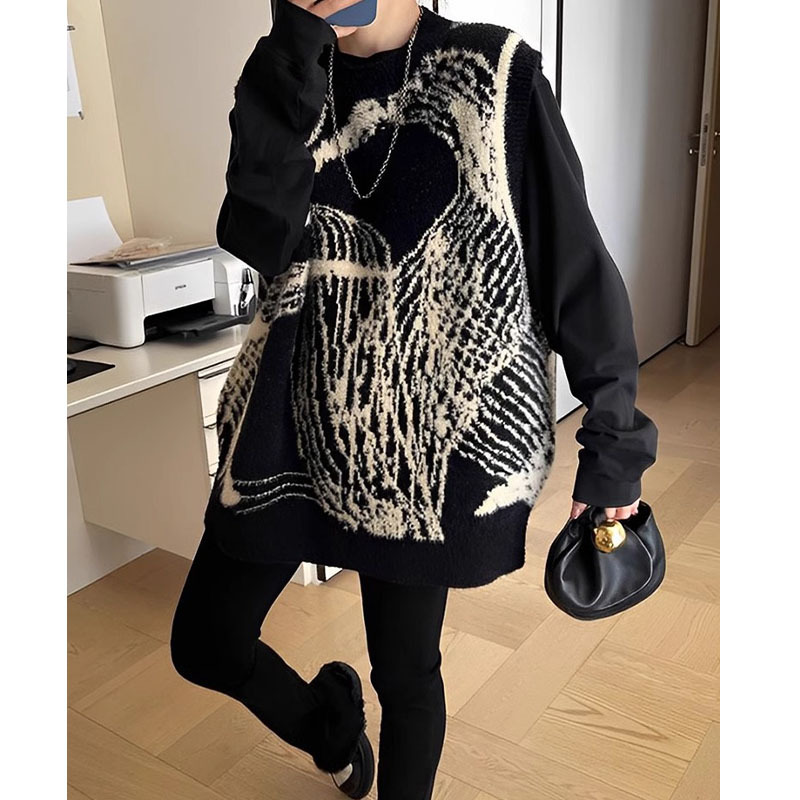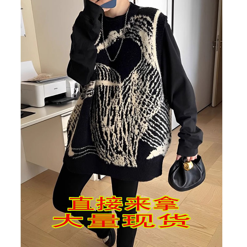 첫 번째 라인 브랜드 할인 픽업 세련된 느슨한 탑 블랙 풀오버 니트 조끼 스웨터 여성의 가을과 겨울스토어 가기
