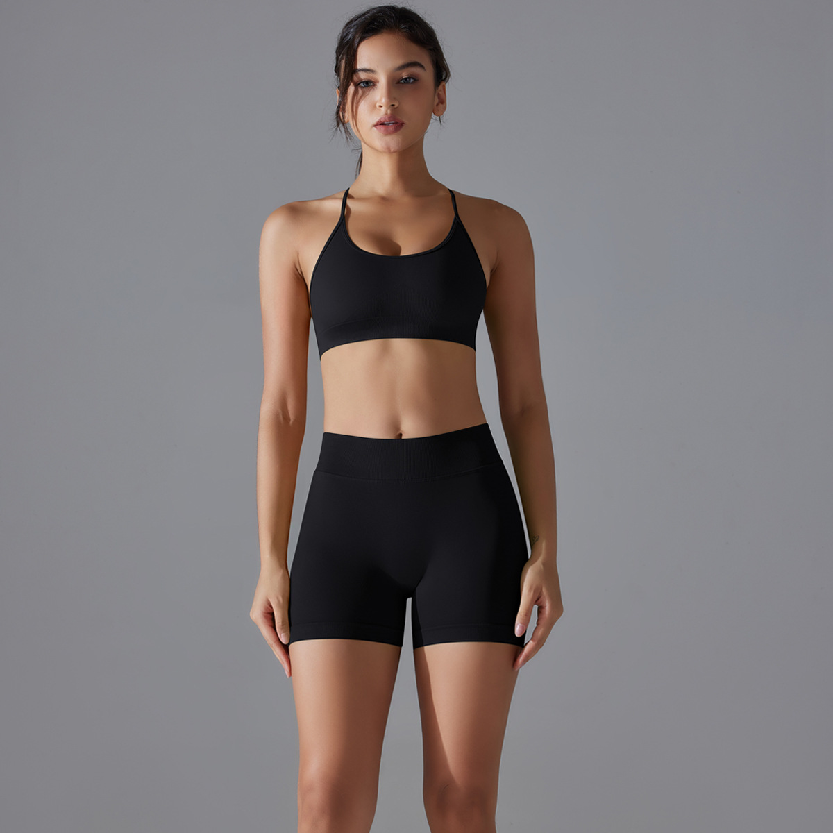 유럽과 미국의 원활한 크로스 백 요가 세트 통기성 빠른 건조 타이트 쇼트 스포츠 세트 러닝 피트니스 세트 세트
