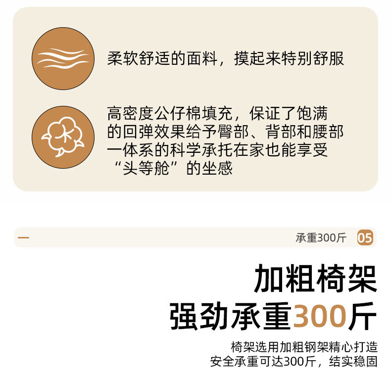 • 강화된 두꺼운 사각 튜브 + 진주 화장솜 + 요추 베개 [등받이 9단계 조절 가능]