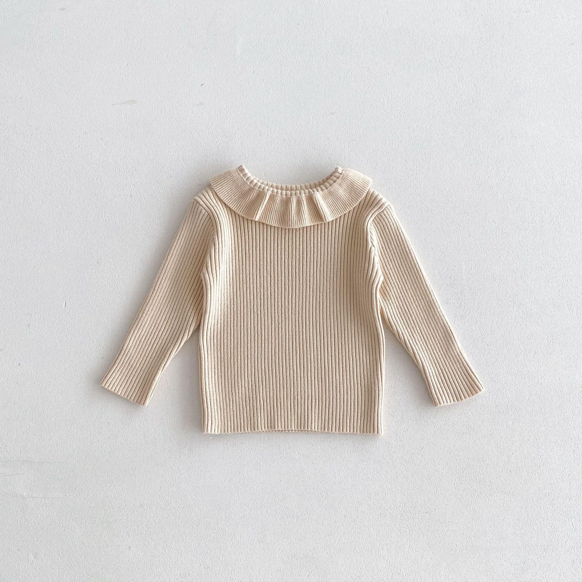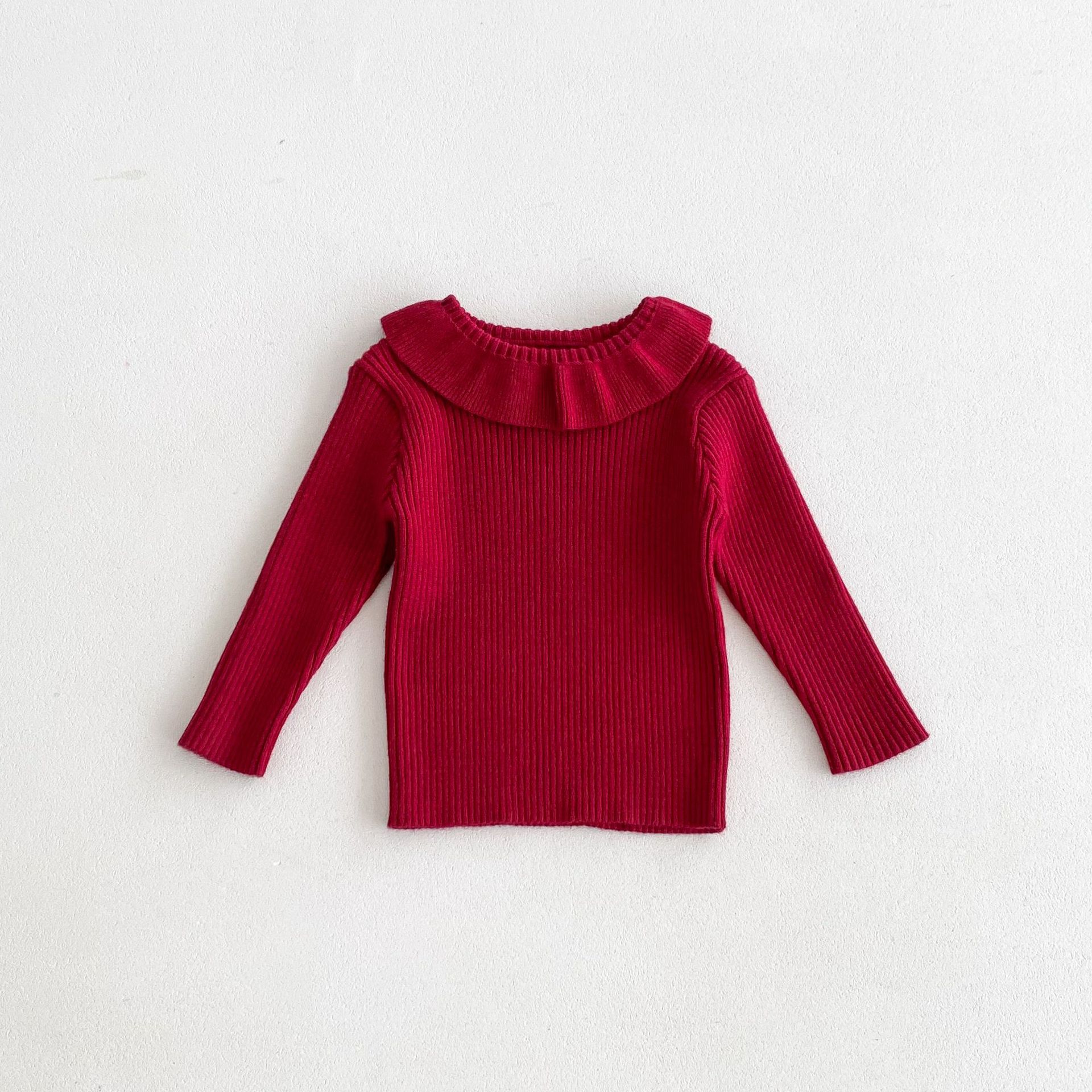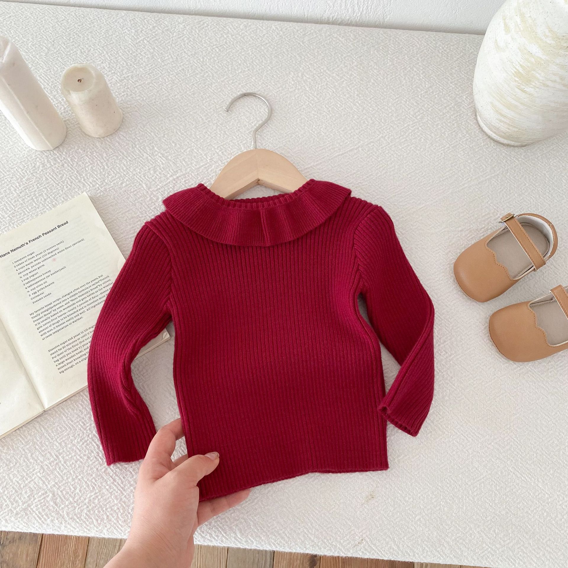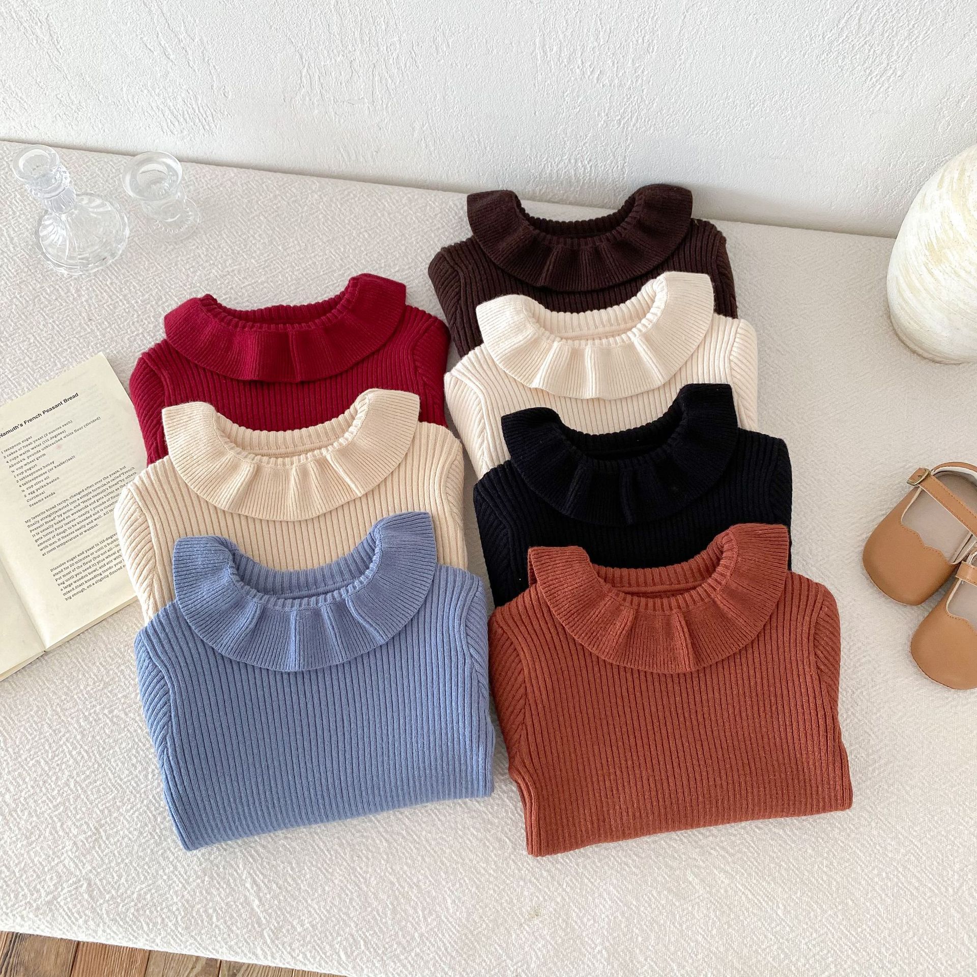 가을 새 소녀의 스웨터 겉옷 옷깃, 아기 소녀 솔리드 컬러 올 매치 가을과 겨울 보텀 풀오버 스웨터
