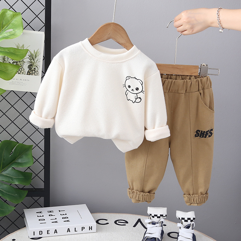 어린이 봄 2024 새로운 스포츠 세트 만화 귀여운 어린이 봄과 가을 스웨트 셔츠 캐주얼 투피스 세트스토어 가기