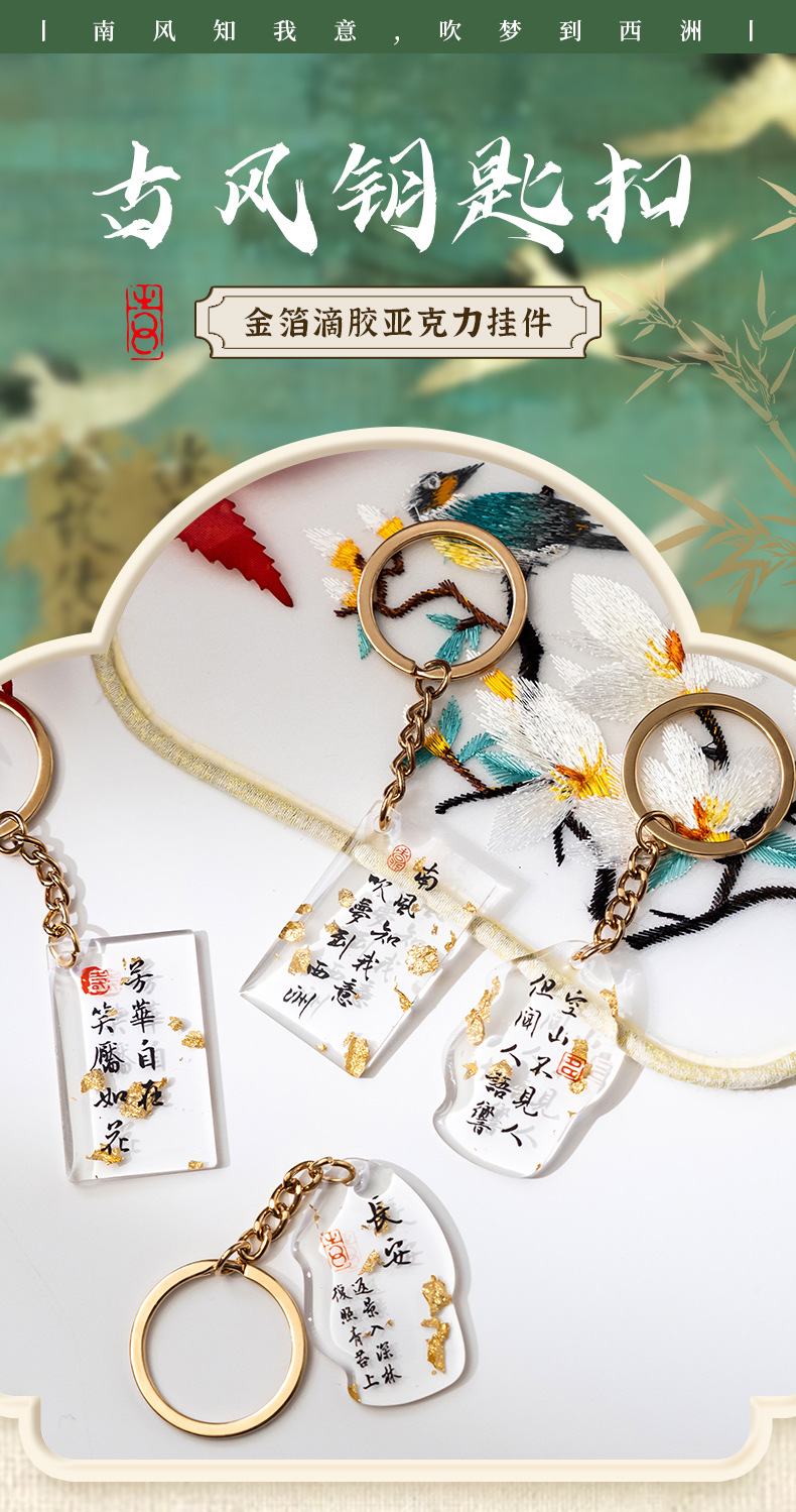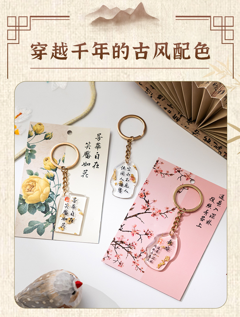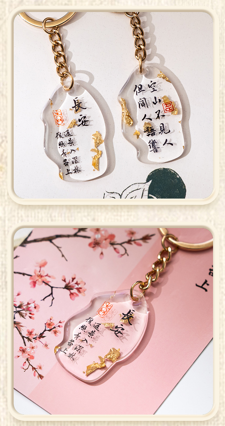 골동품 아크릴 키 체인 서예 텍스트 교수형 장식 빈티지 아트 장식 펜던트 상 작은 선물