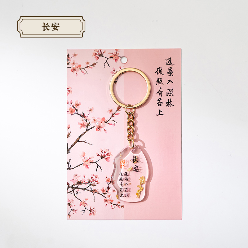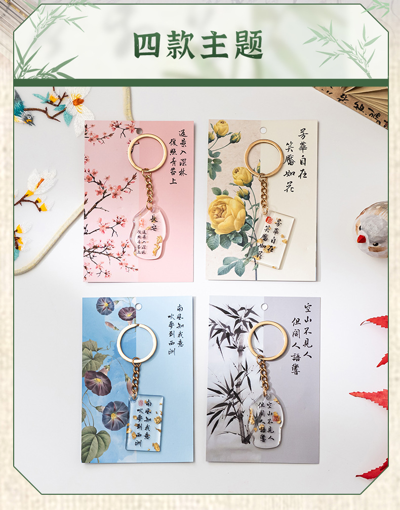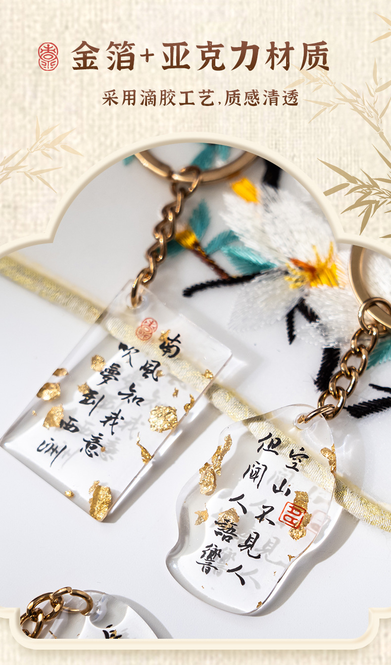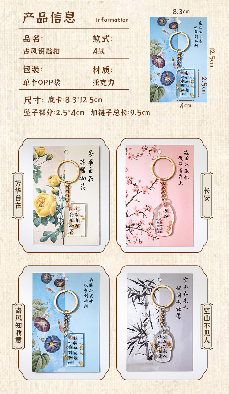 골동품 아크릴 키 체인 서예 텍스트 교수형 장식 빈티지 아트 장식 펜던트 상 작은 선물