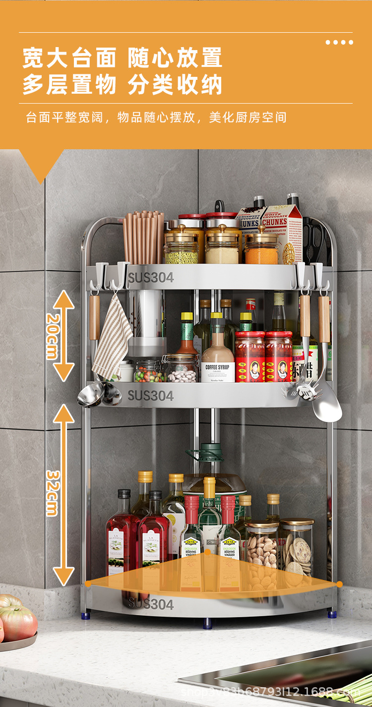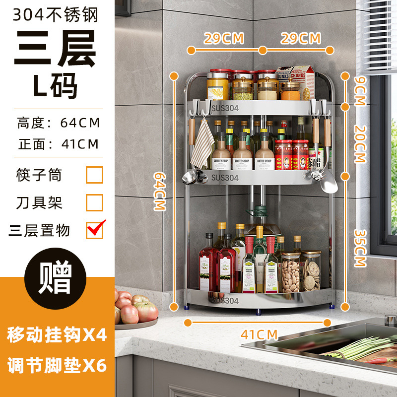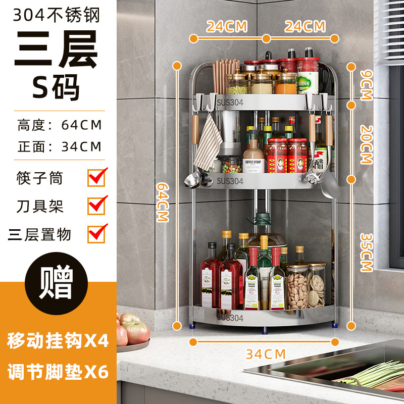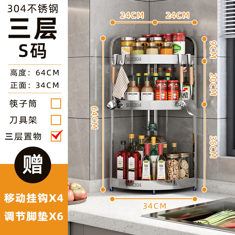 304 스테인레스 스틸 주방 랙 조미료 삼각대 양념 랙 카운터 탑 코너 나이프 랙 젓가락 보관 랙