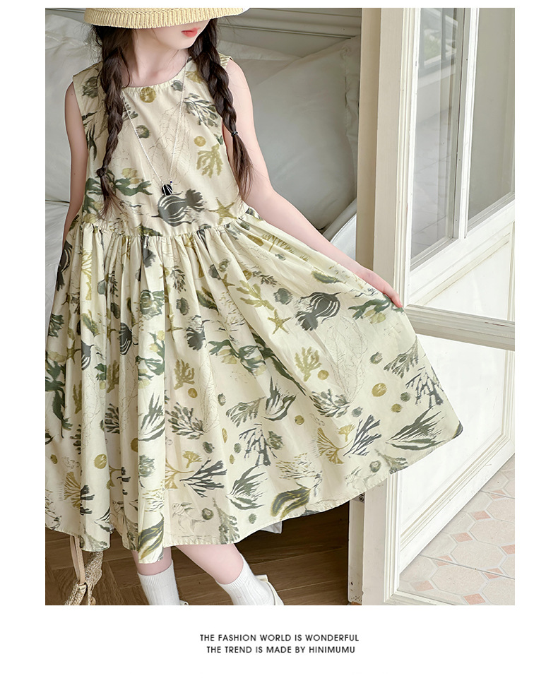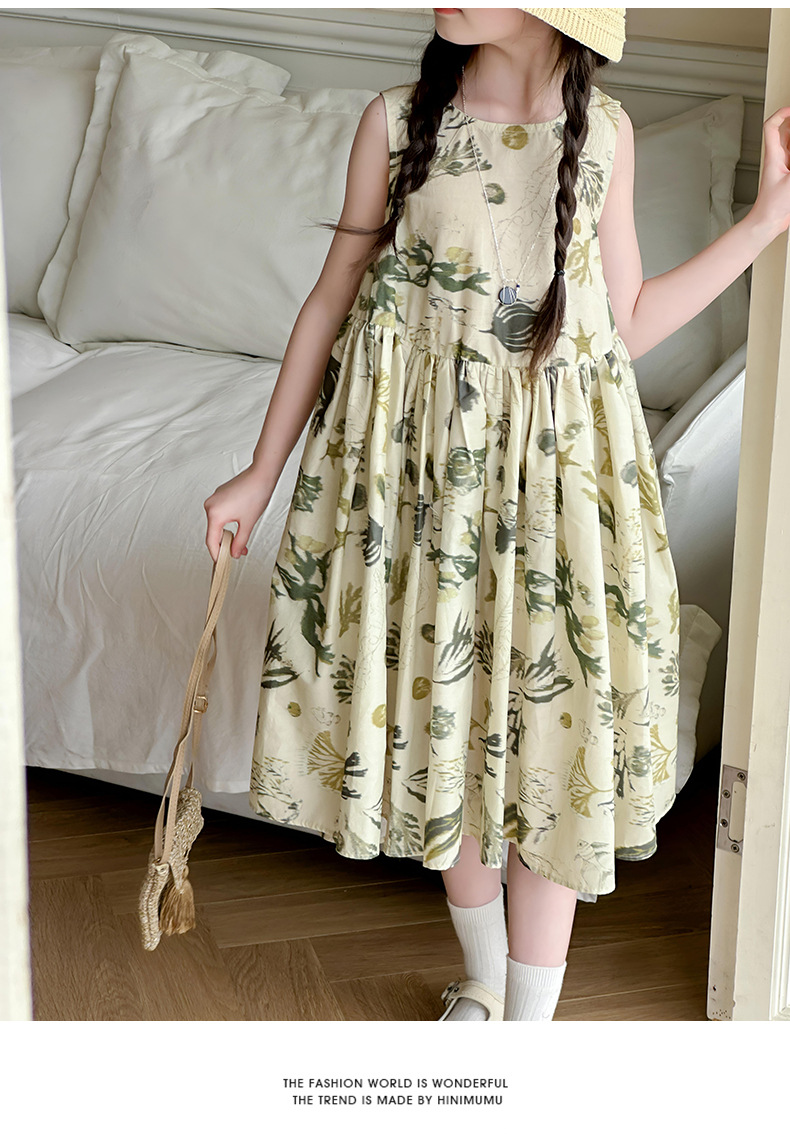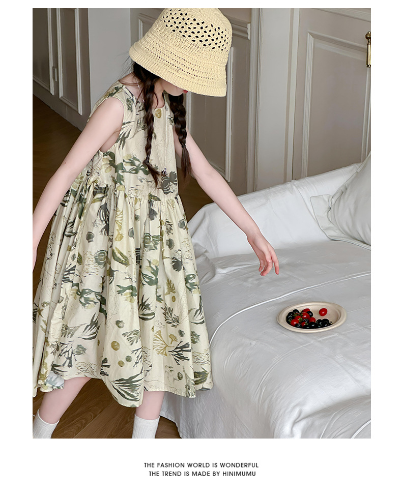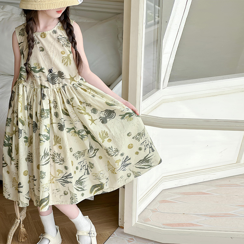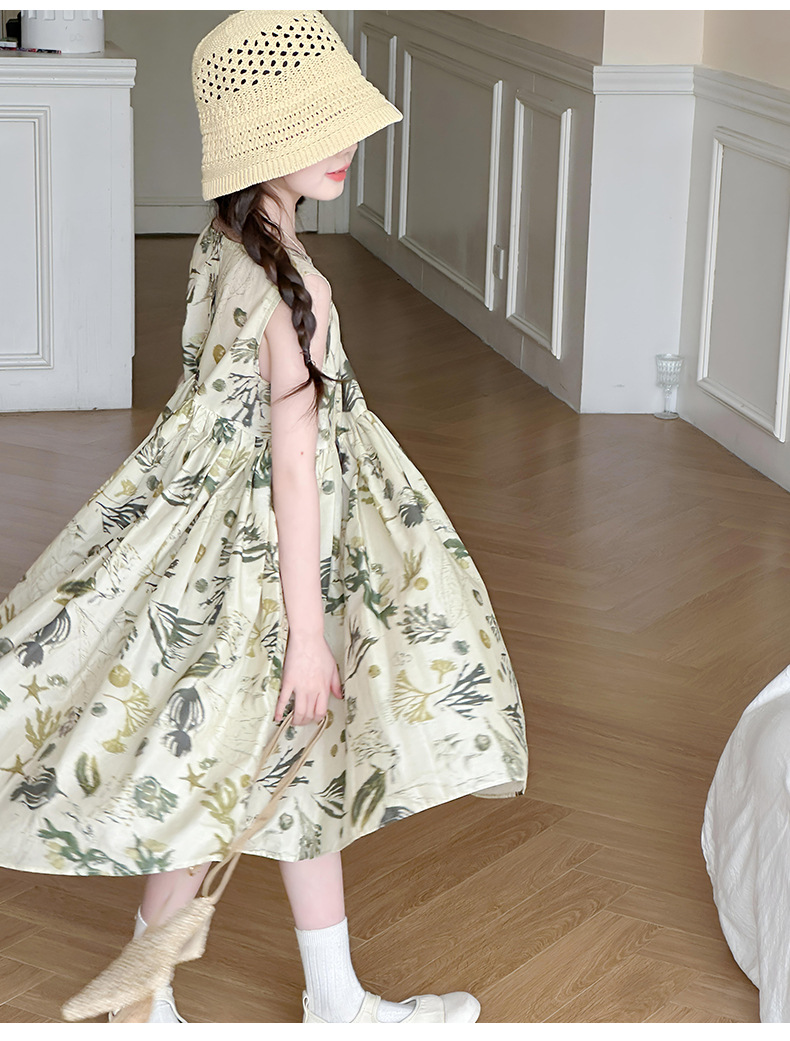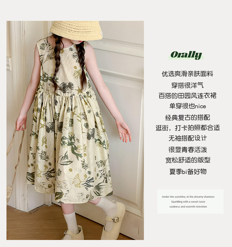 소녀 원피스 여름 2024 새로운 서양식 어린이 여름 얇은 모리 목가적 스타일 조끼 면화 원피스