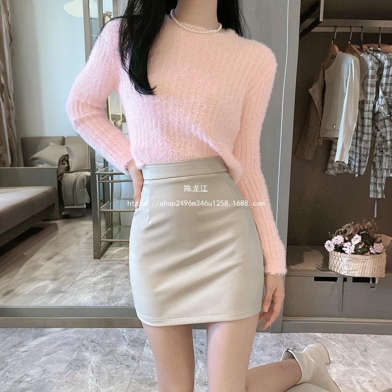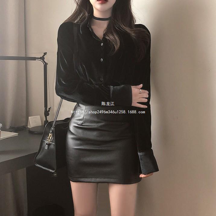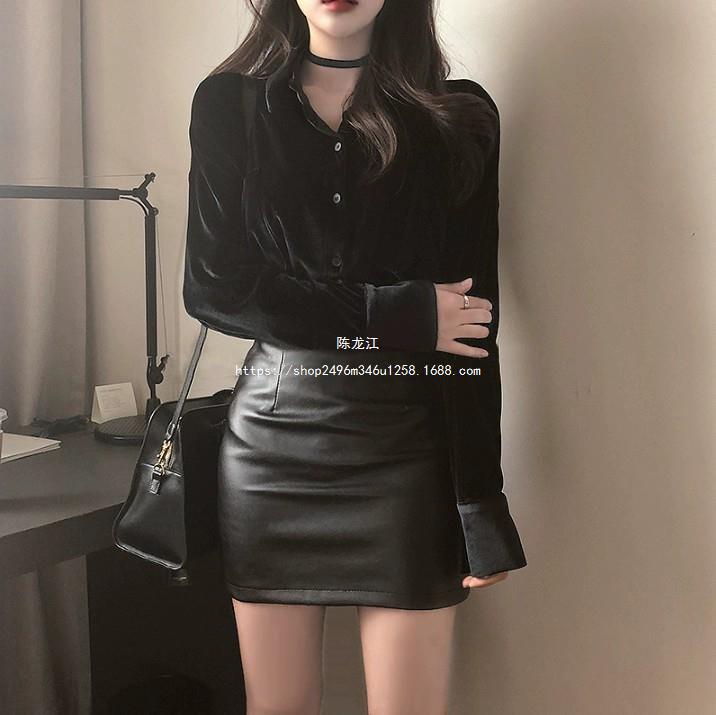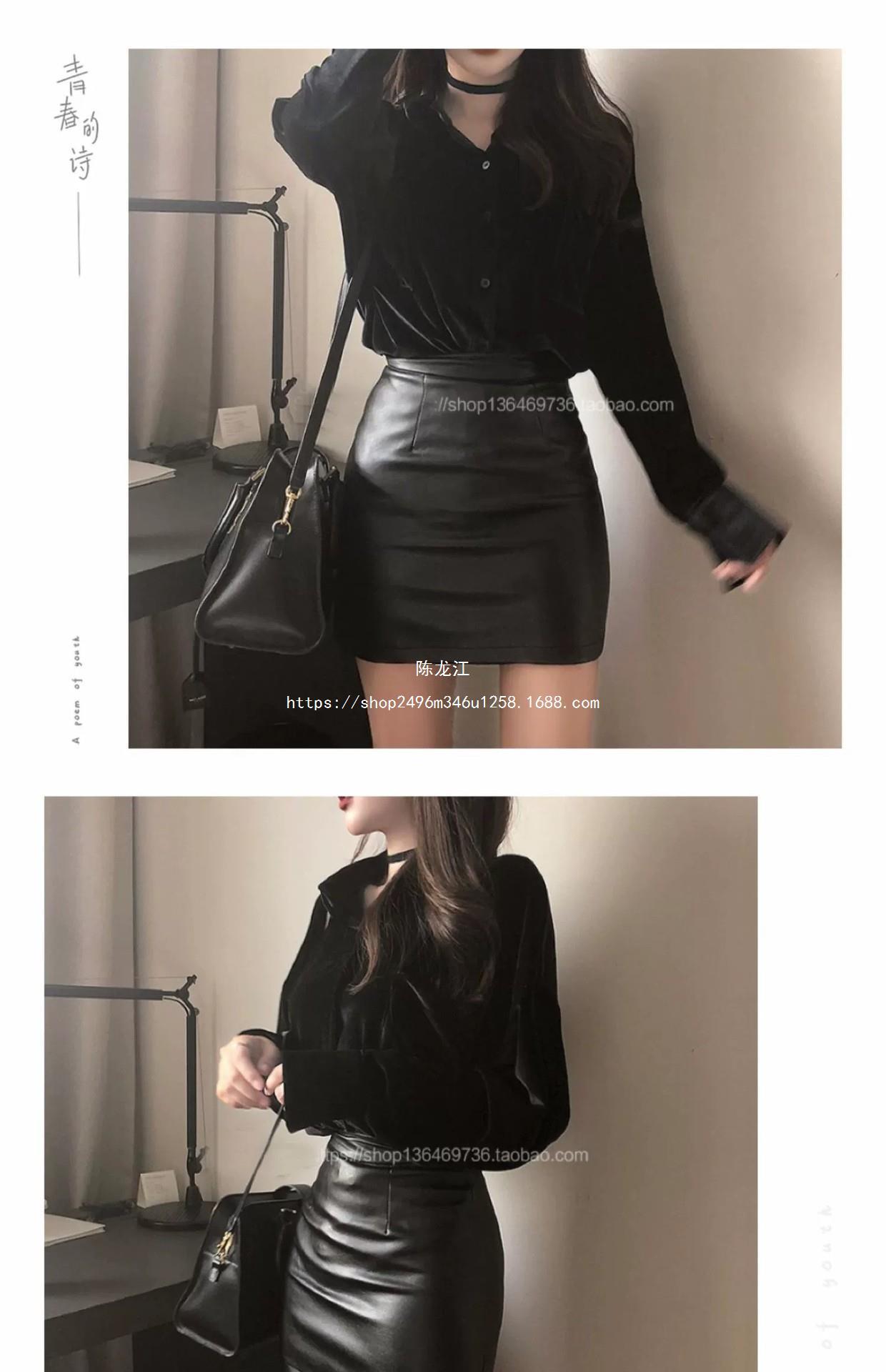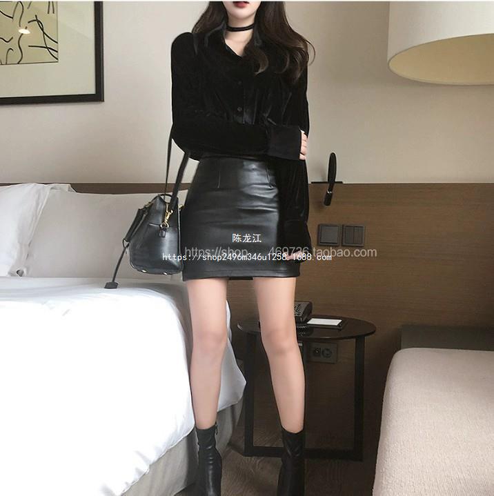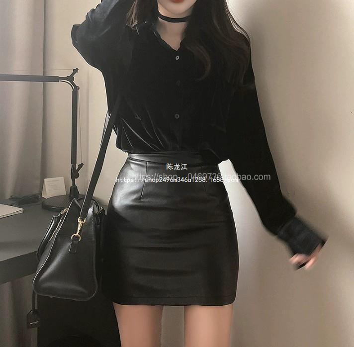 전문 여성 PU 작은 OL 스커트 작은 가죽 스커트 짧은 2024 검은 엉덩이 새로운 섹시한 타이트스토어 가기