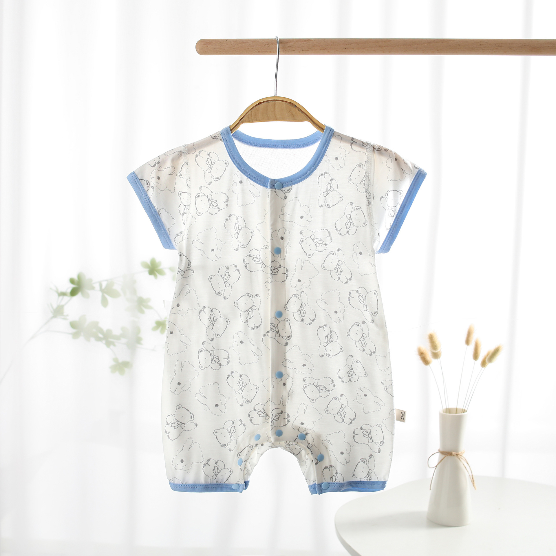 아기 점프 수트 여름 얇은 옷 반팔 에어컨 의류 모달 신생아 옷 홈 파자마스토어 가기