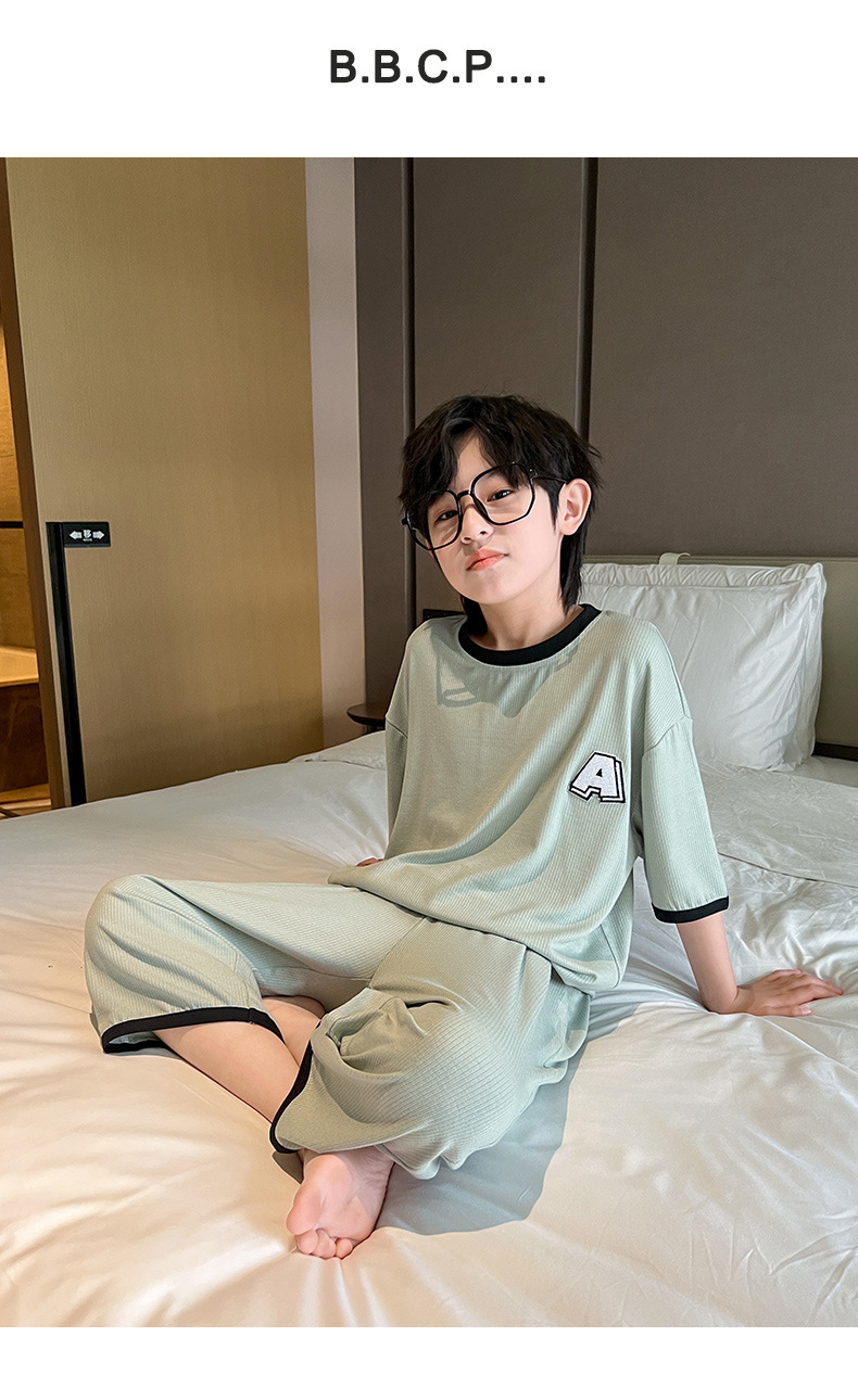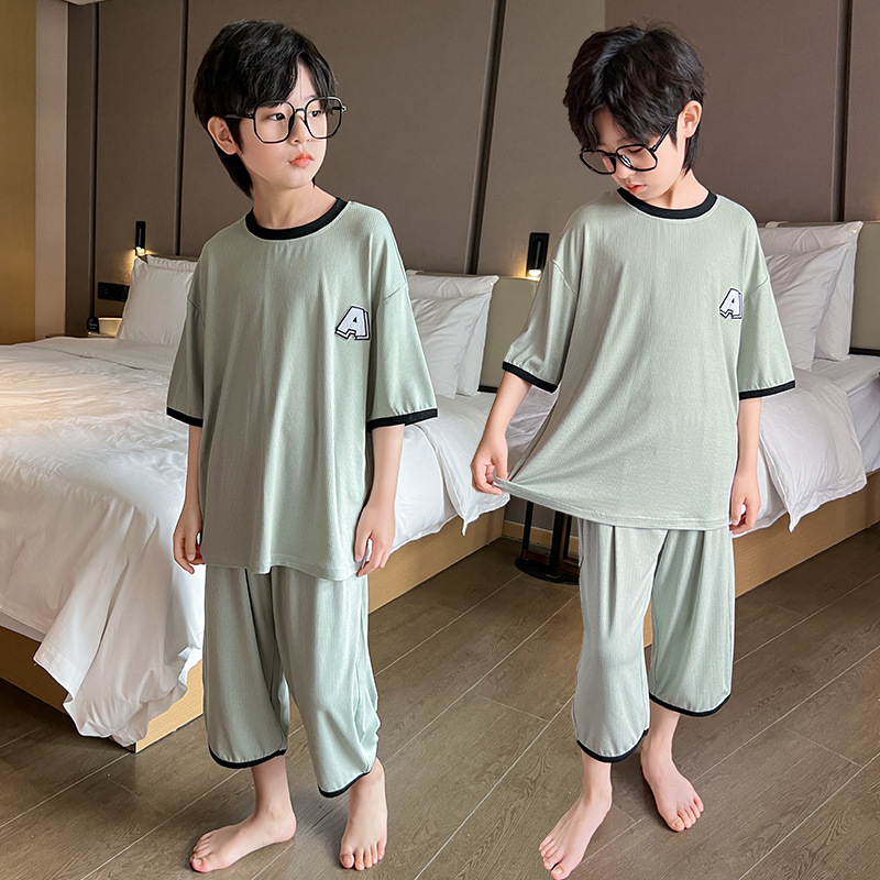 여름 새 소년 '2025 잠옷 세트 캐주얼 편안한 홈 의류 큰 어린이와 아기 소년을위한 투피스 세트