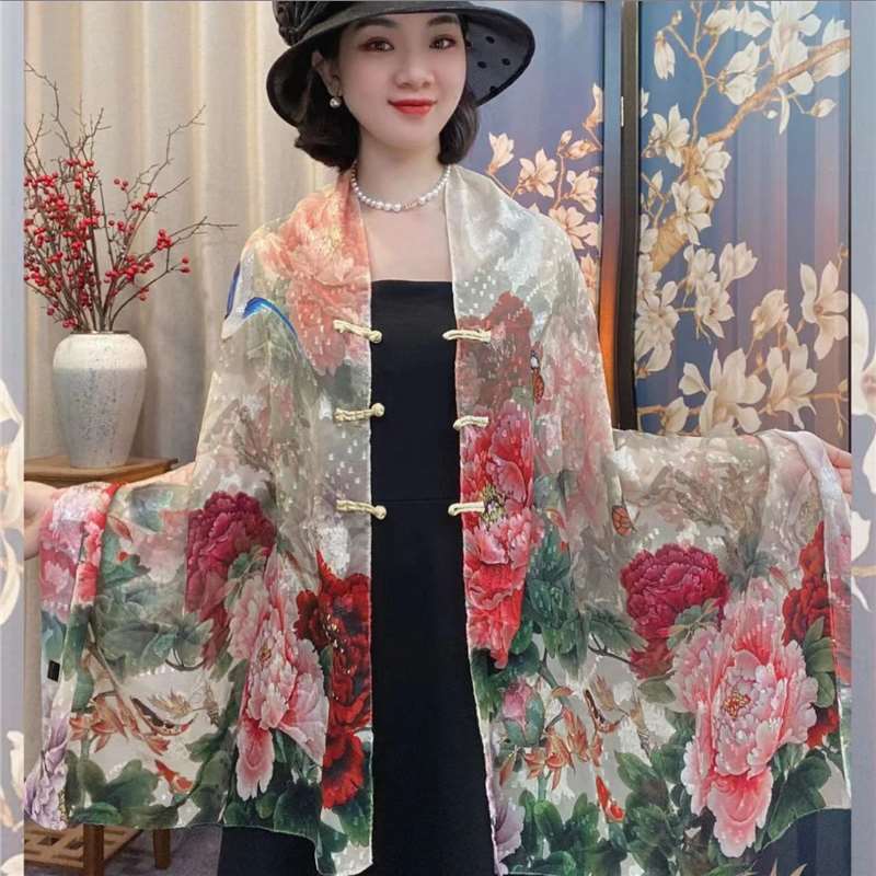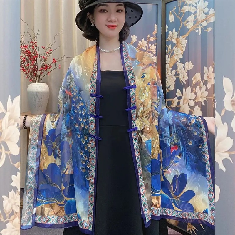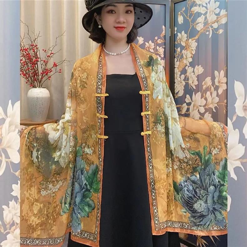 새로운 중국 스타일 버튼 목도리 컷 꽃 올 매치 청삼 목도리 국가 스타일 여행 사진 스카프 여성