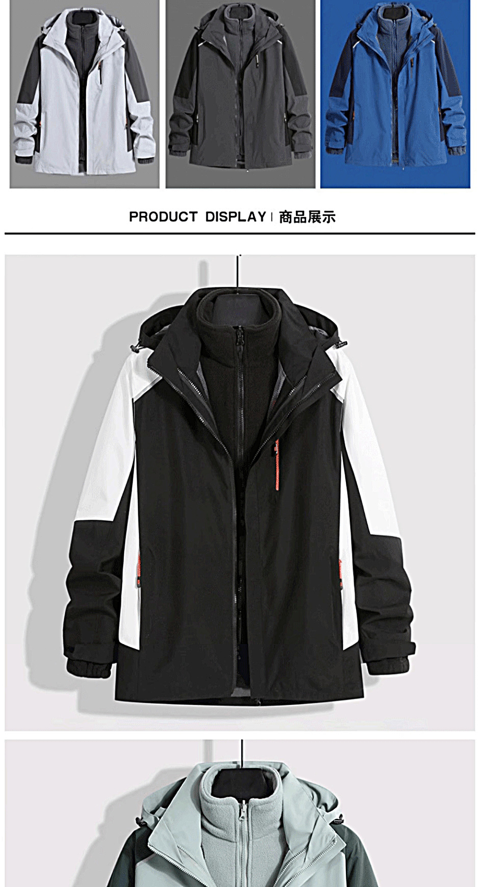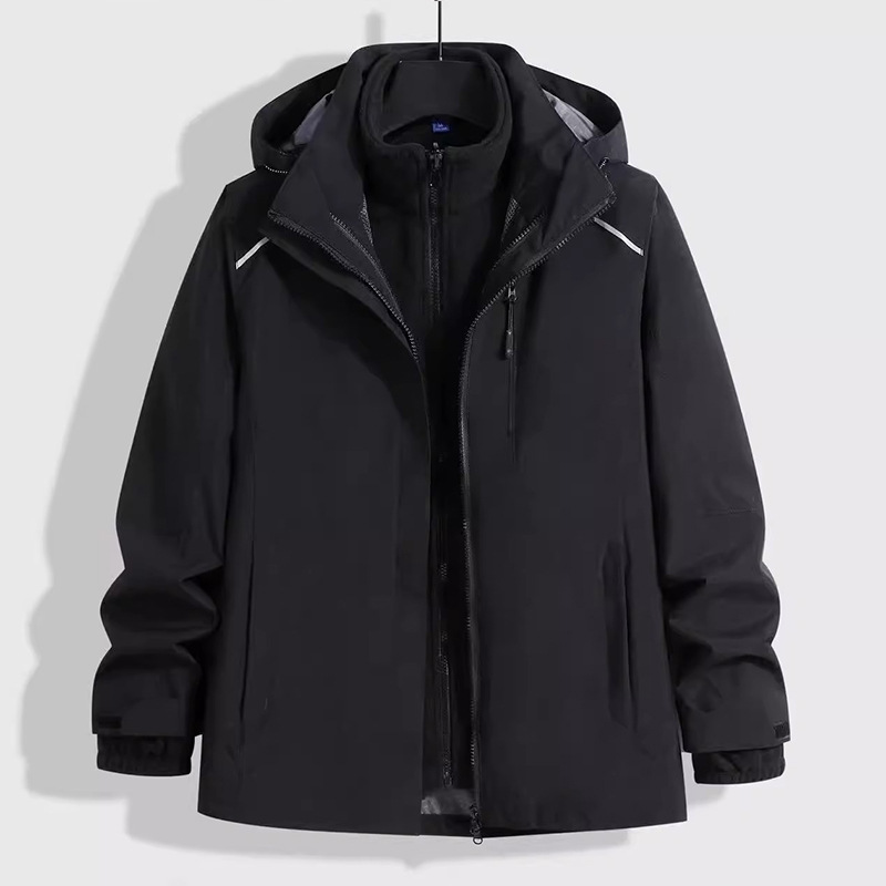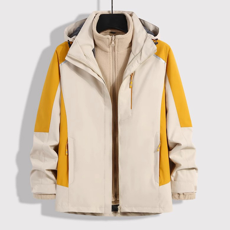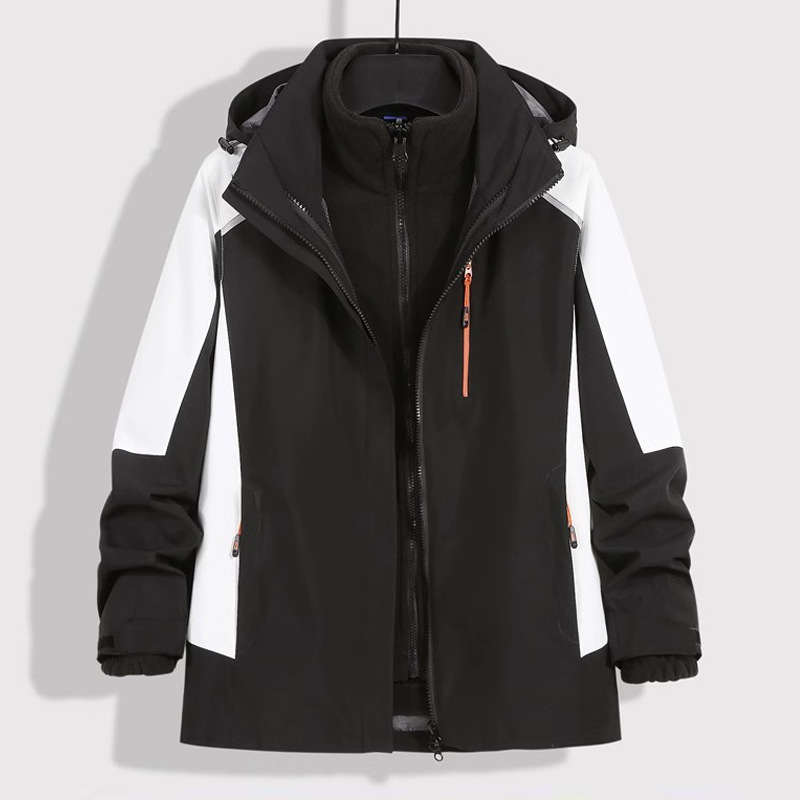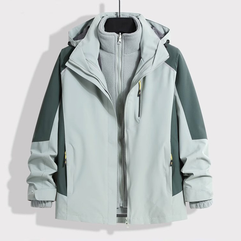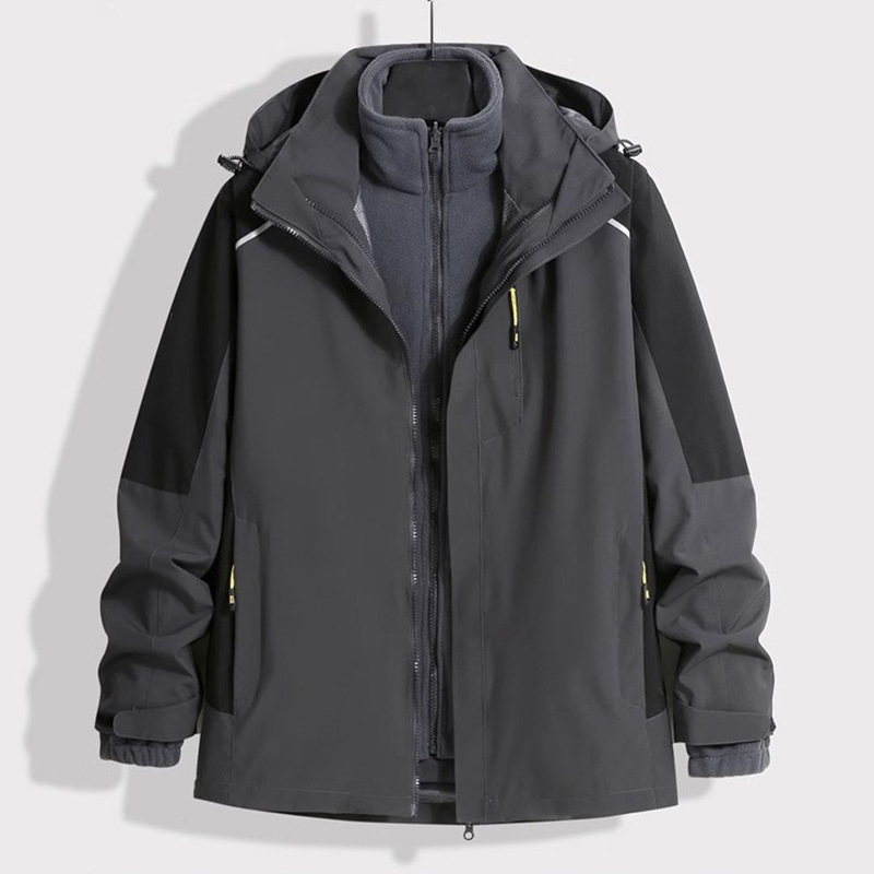 남성용 재킷, 실버 폭스 벨벳 안감, 3-in-1 탈부착 가능, 야외 방풍 및 방수, 가을 겨울 재킷, 등산에 적합하고 멋집니다.스토어 가기