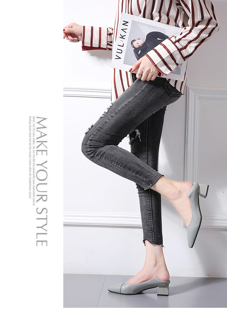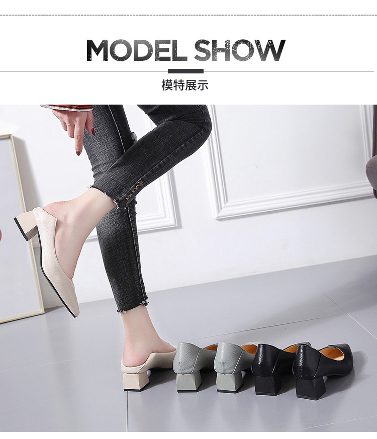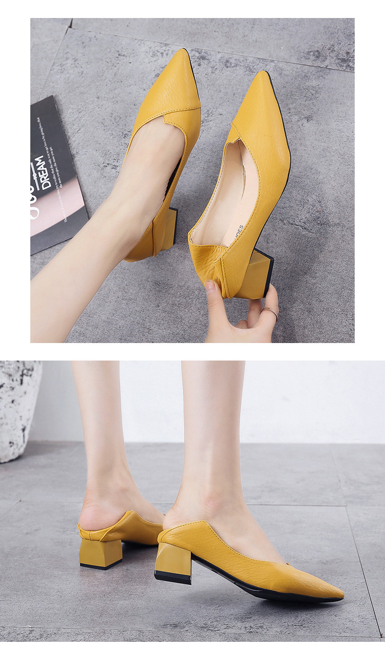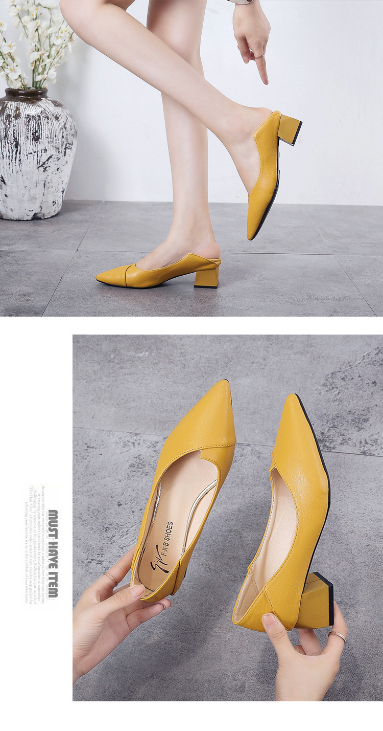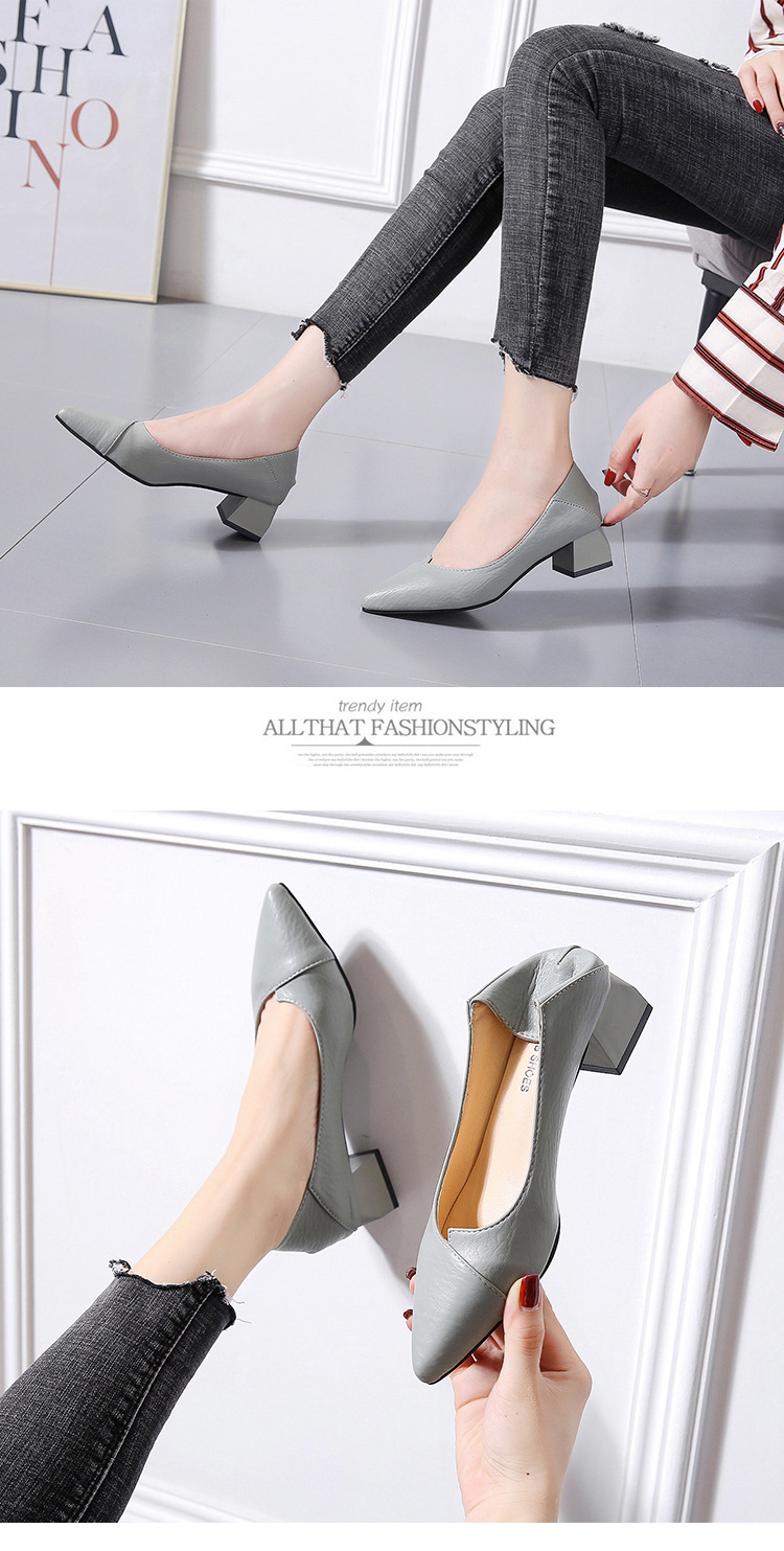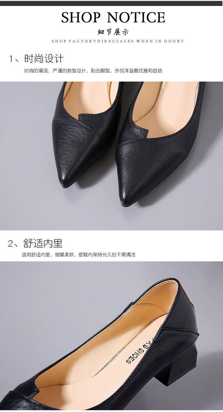 부드러운 가죽 하이힐 여성 두꺼운 힐 신발 중간 힐 블랙 가죽 신발 여성 인터뷰 작업 사계절 여성 신발 전문 작업스토어 가기