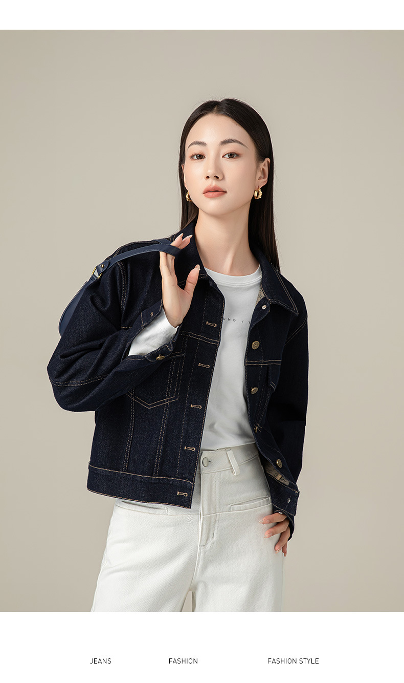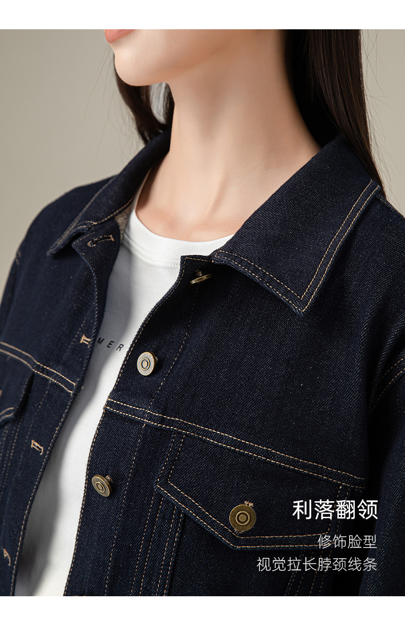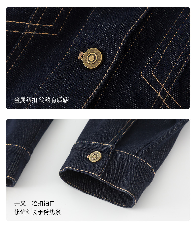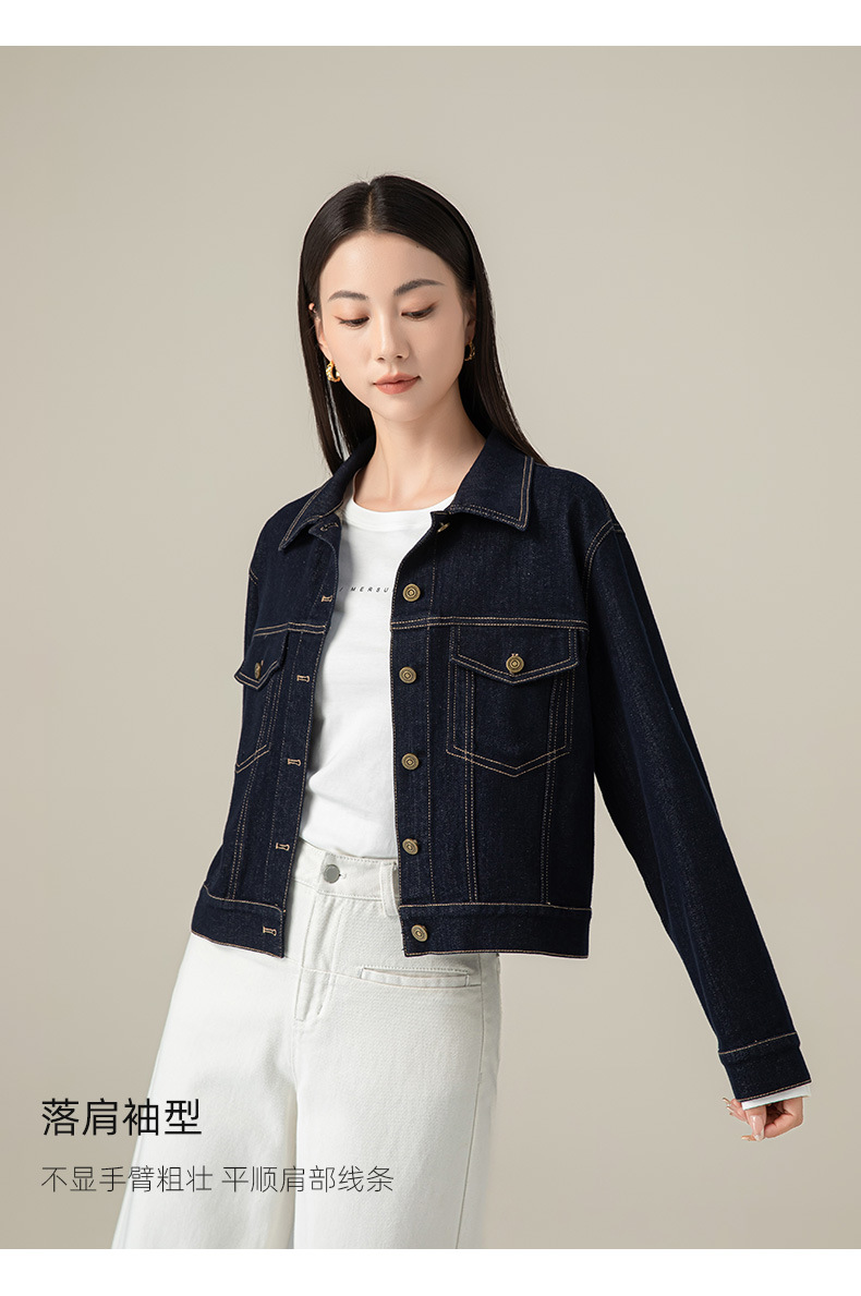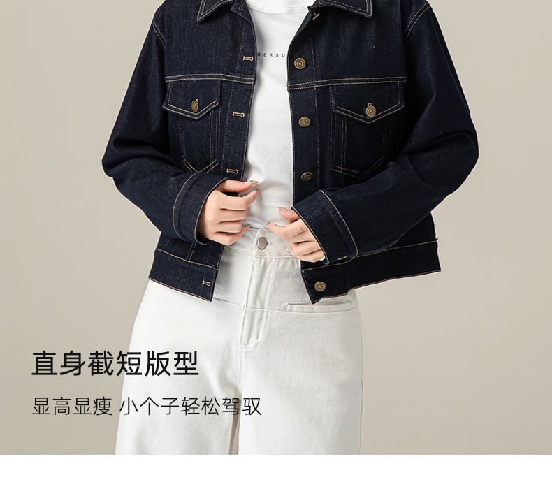 신거 가을 다크블루 데님 재킷 여성용 2025 신상품 소형 숏 스타일 다용도 정형 어깨 재킷 상의
