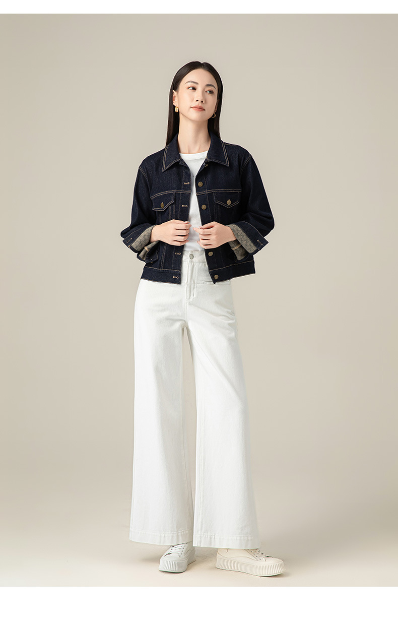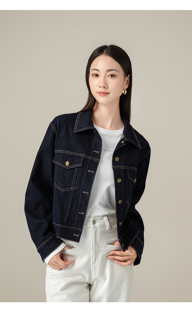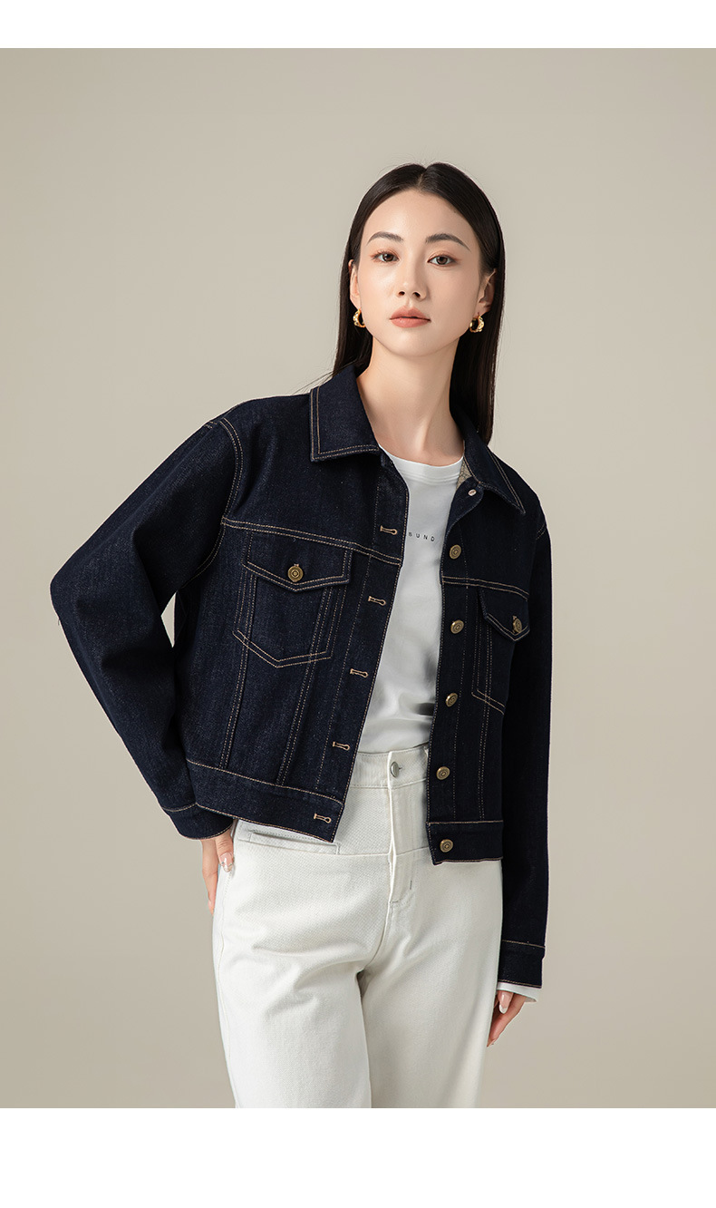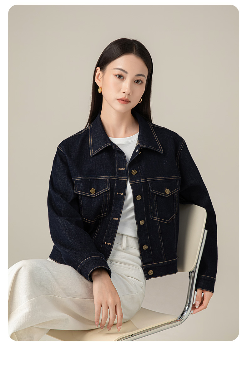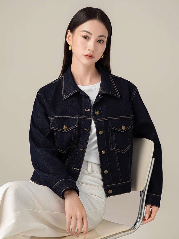 신거 가을 다크블루 데님 재킷 여성용 2025 신상품 소형 숏 스타일 다용도 정형 어깨 재킷 상의