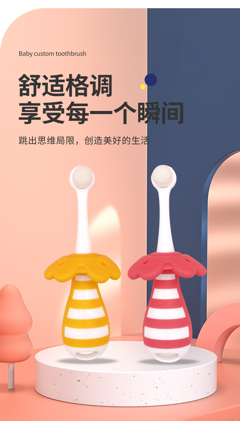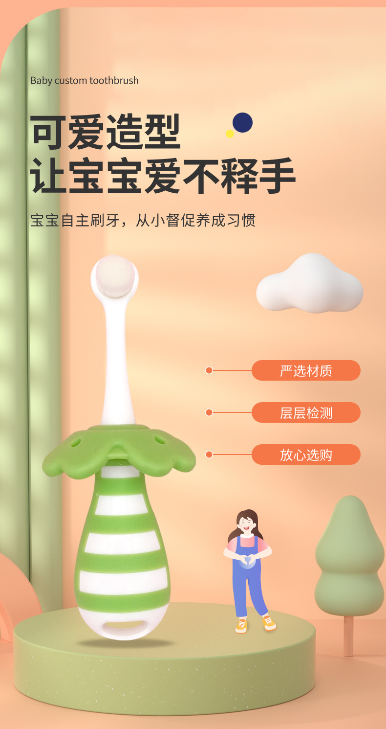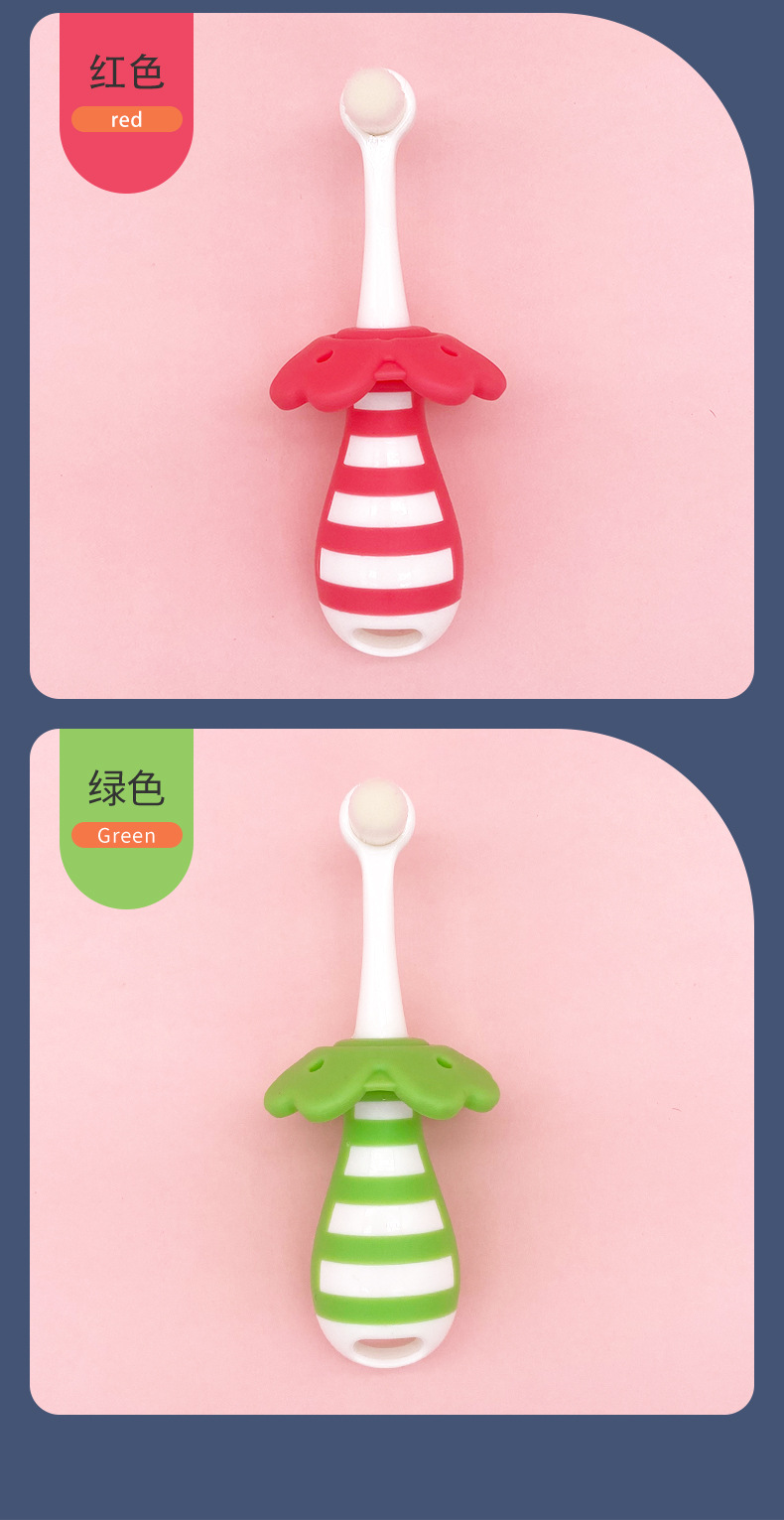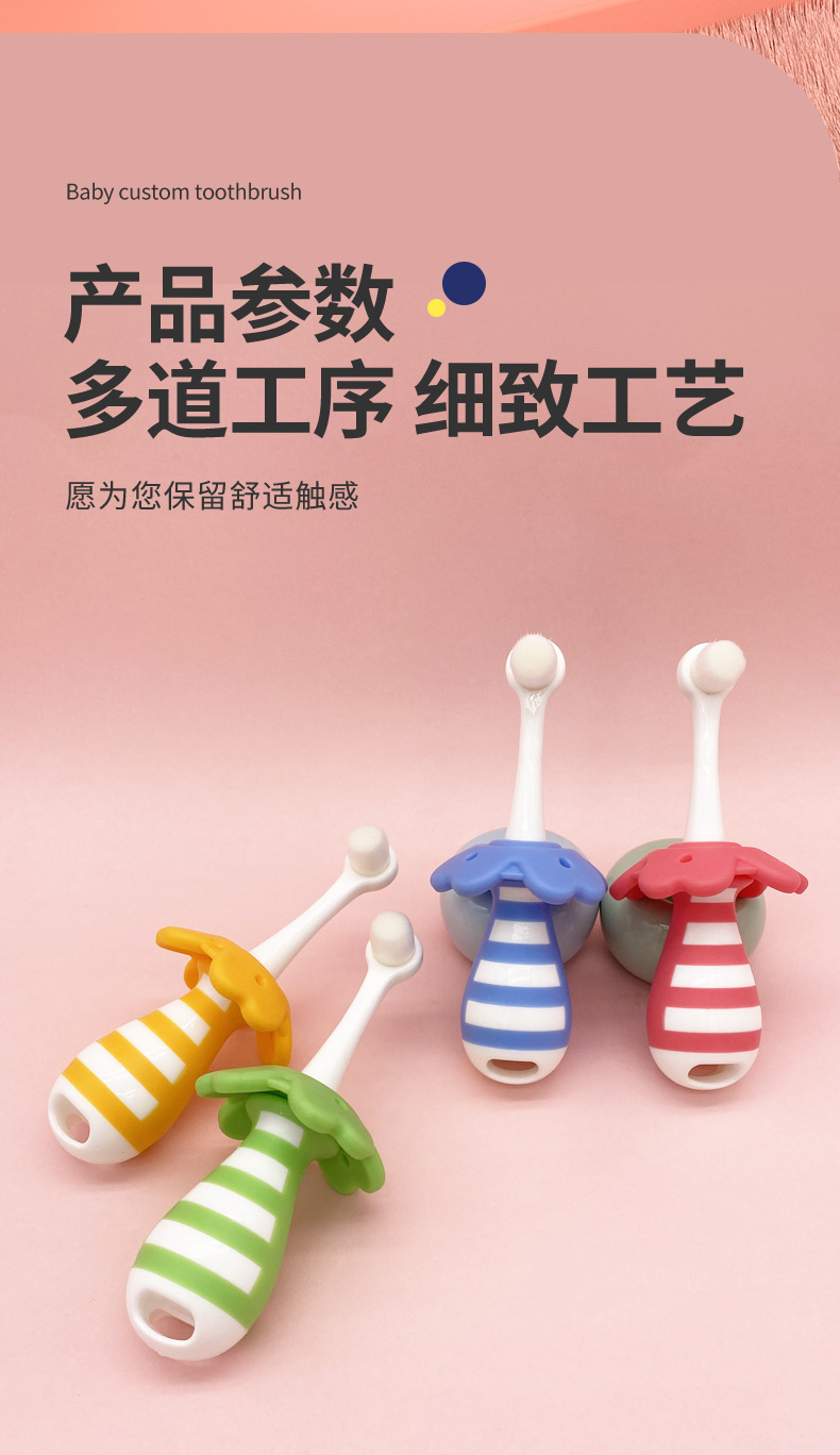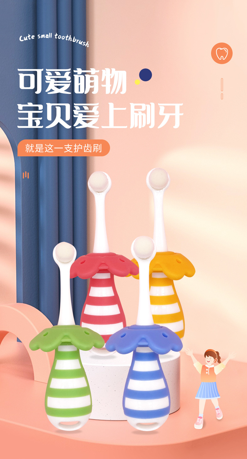 부드러운 모의 어린이용 칫솔, 0~3세 영유아 전용 유치용 칫솔, 피부에 상처를 주지 않고 목에 걸림 방지, 예쁜 디자인의 칫솔