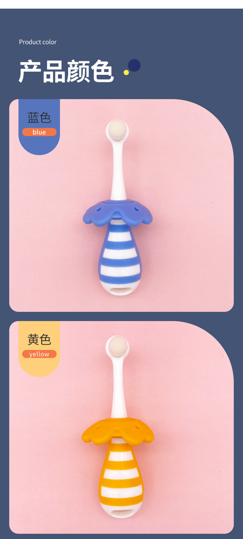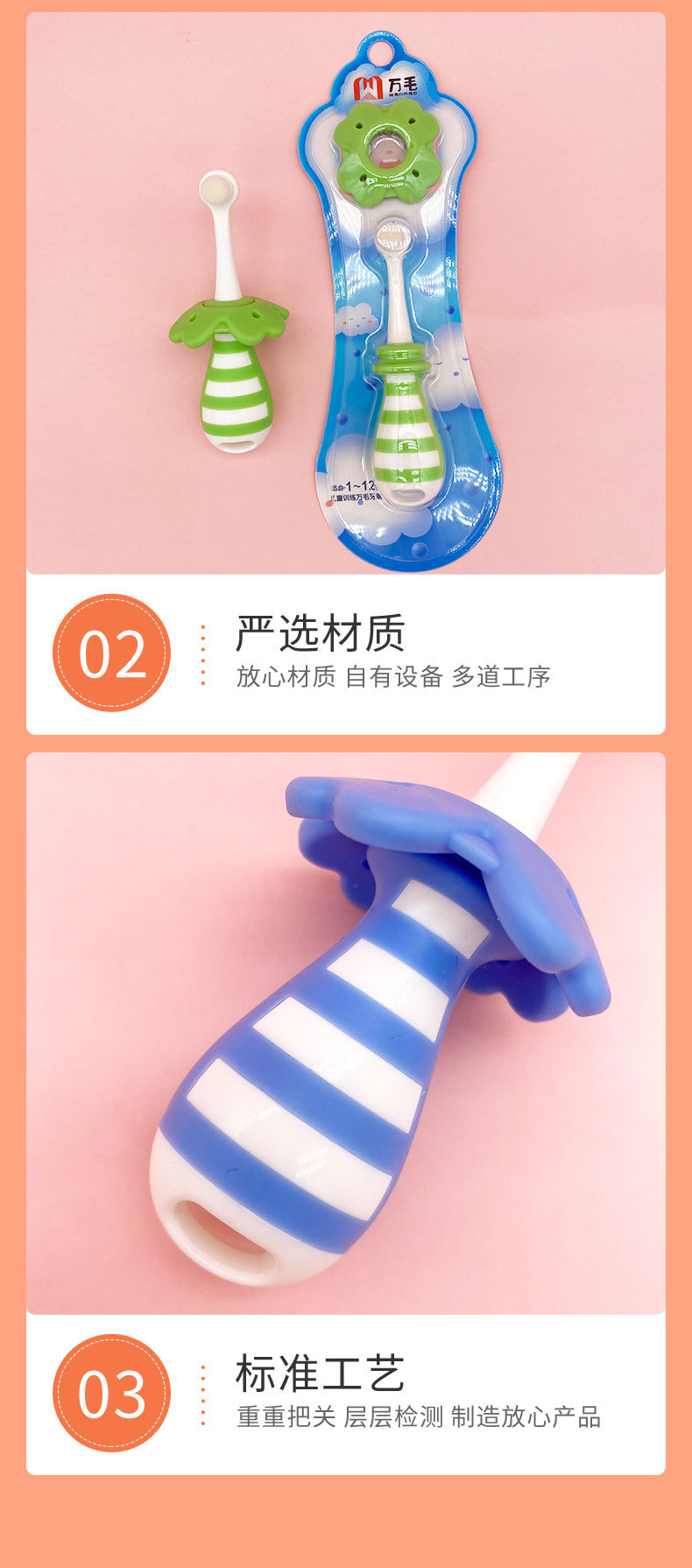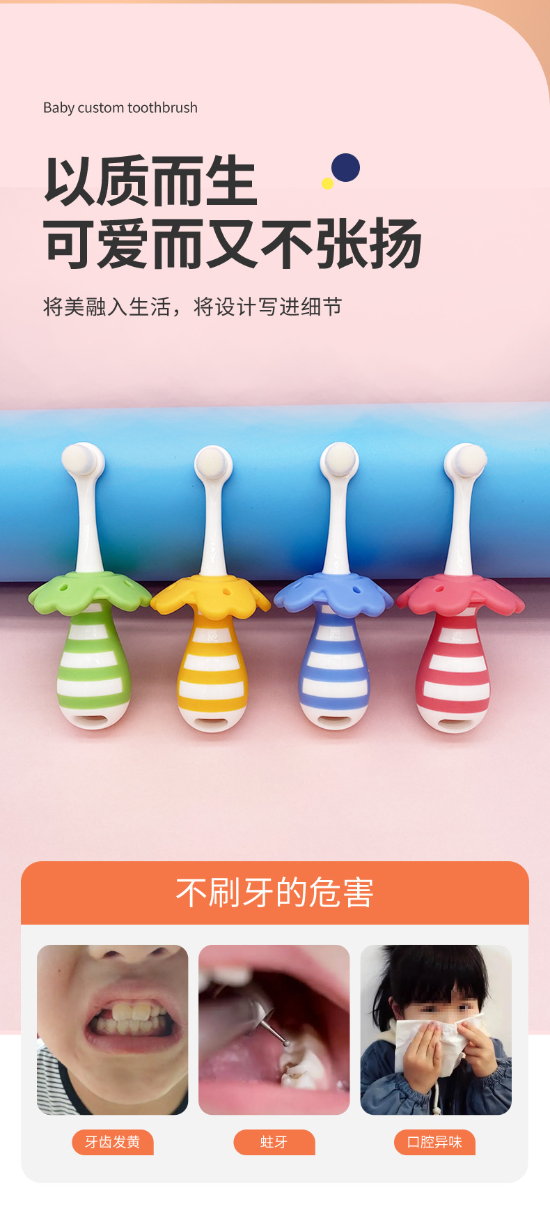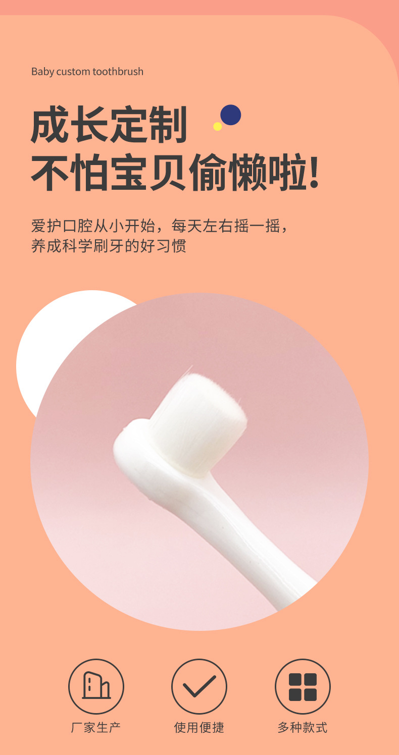 부드러운 모의 어린이용 칫솔, 0~3세 영유아 전용 유치용 칫솔, 피부에 상처를 주지 않고 목에 걸림 방지, 예쁜 디자인의 칫솔